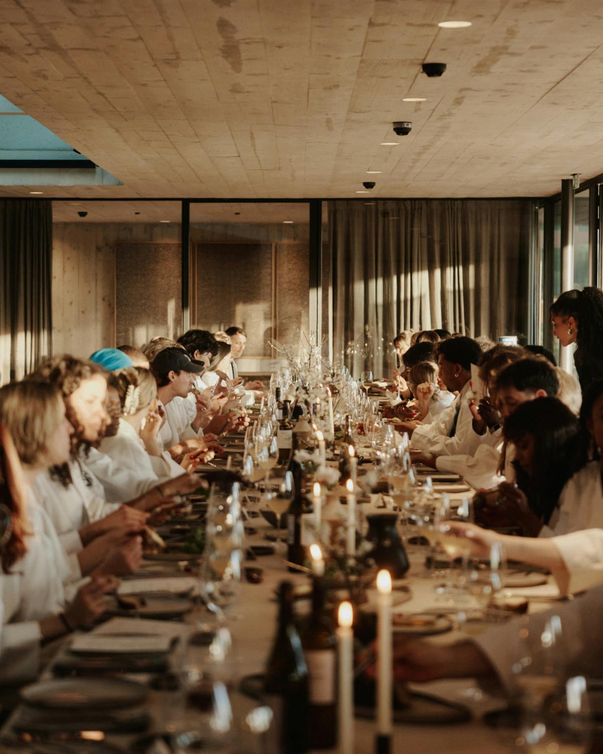Guests, dressed in a custom white ASICS Samue set—a traditional Japanese garment crafted for ease of movement, originally worn by monks and now typically donned as loungewear—were invited to participate in workshops that explored energy and community through breathwork, product innovation, and family-style dining.