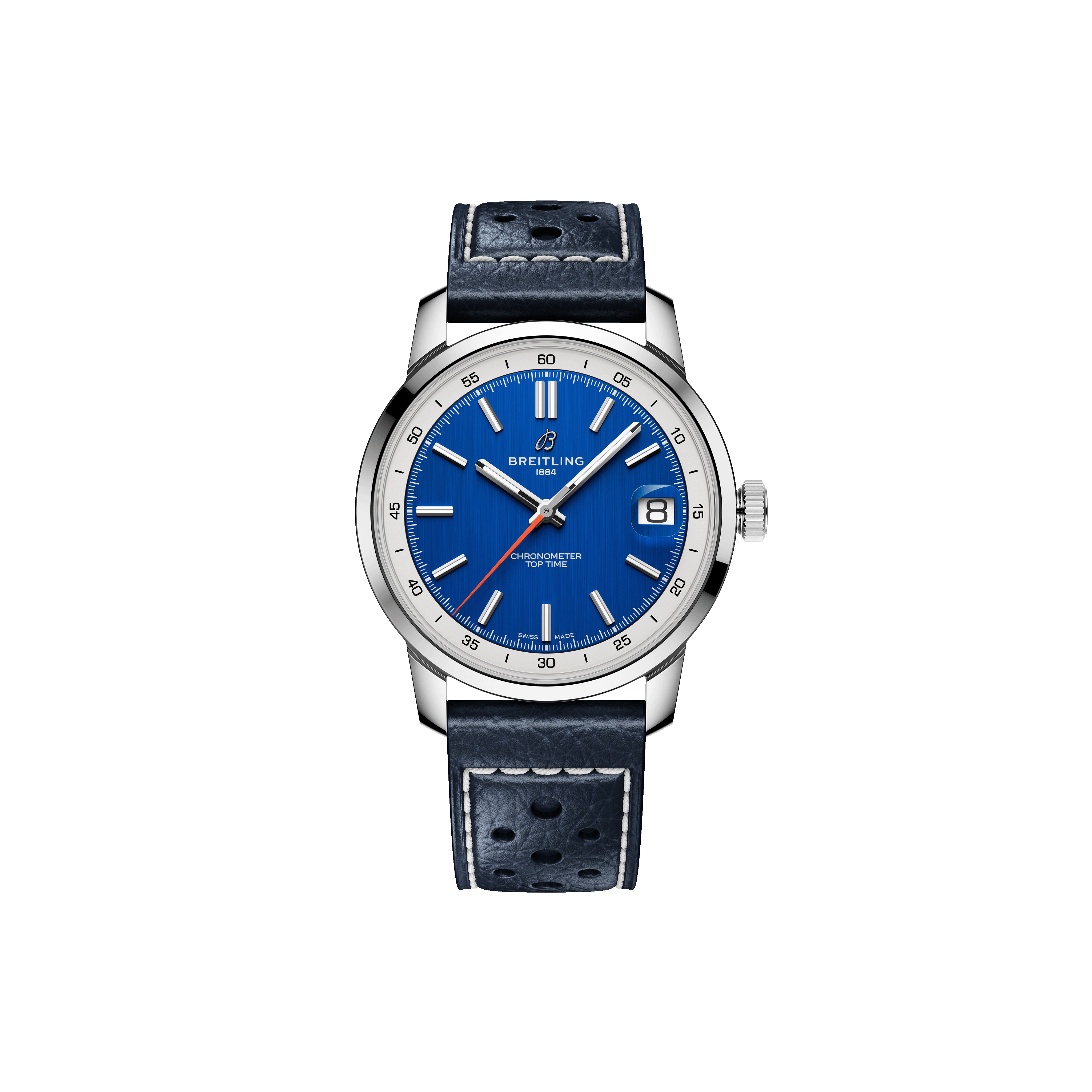 The “B31” addition to the Top Time name refers to the first three-hand “manufacture movement” designed and developed by Breitling, representing the historic Swiss watchmaker’s evolution toward exclusively offering movements made in-house. “I'm most excited to go to Switzerland and visit the Breitling manufacture,” says Butler, so he can learn to understand the movements and the overall watchmaking process.