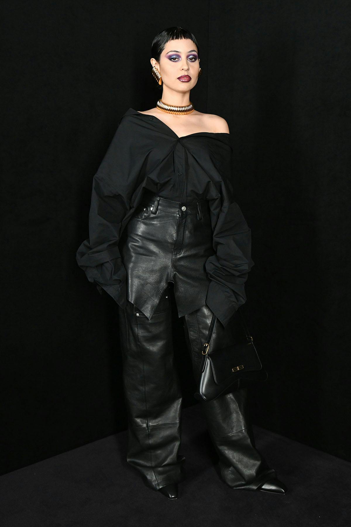 Isabelle Huppert, a longtime Balenciaga collaborator, exuded French cool in an understated, all-black 'fit — save for a highlighter green handbag.