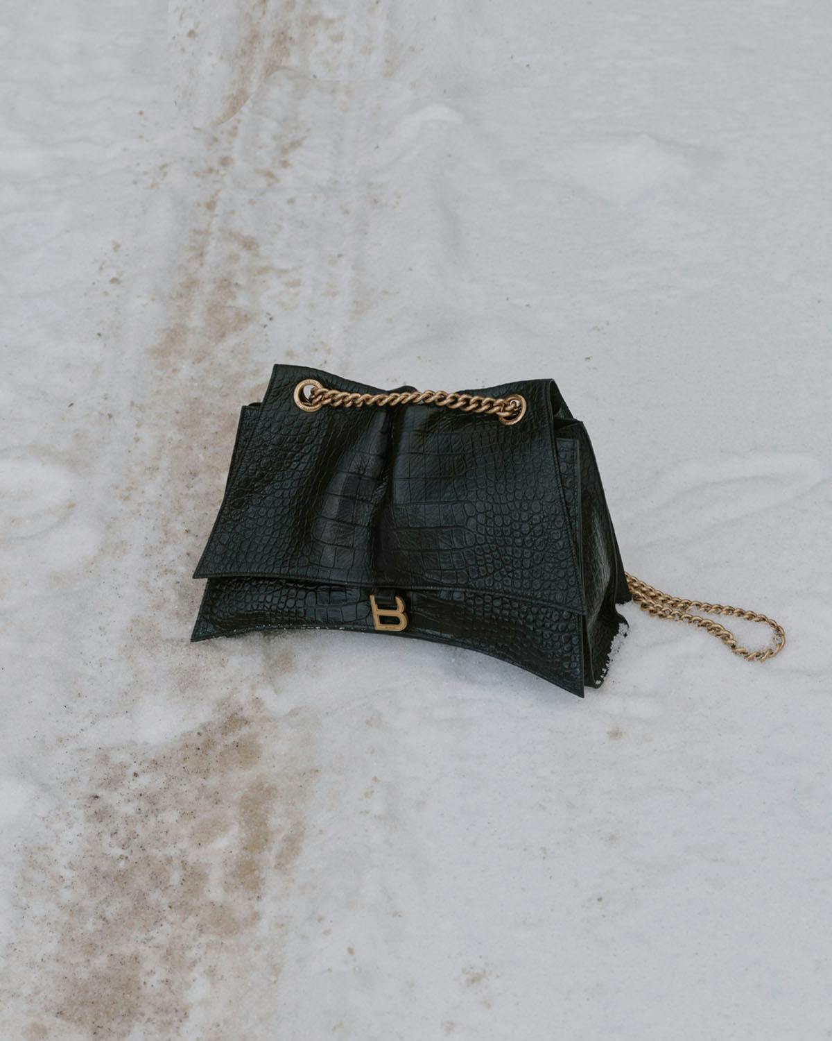 Roché also captured some striking images of the season's most buzzed-about product, namely, Balenciaga's $1,790 Trash Pouch — essentially a Hefty bag but rendered in calfskin leather.