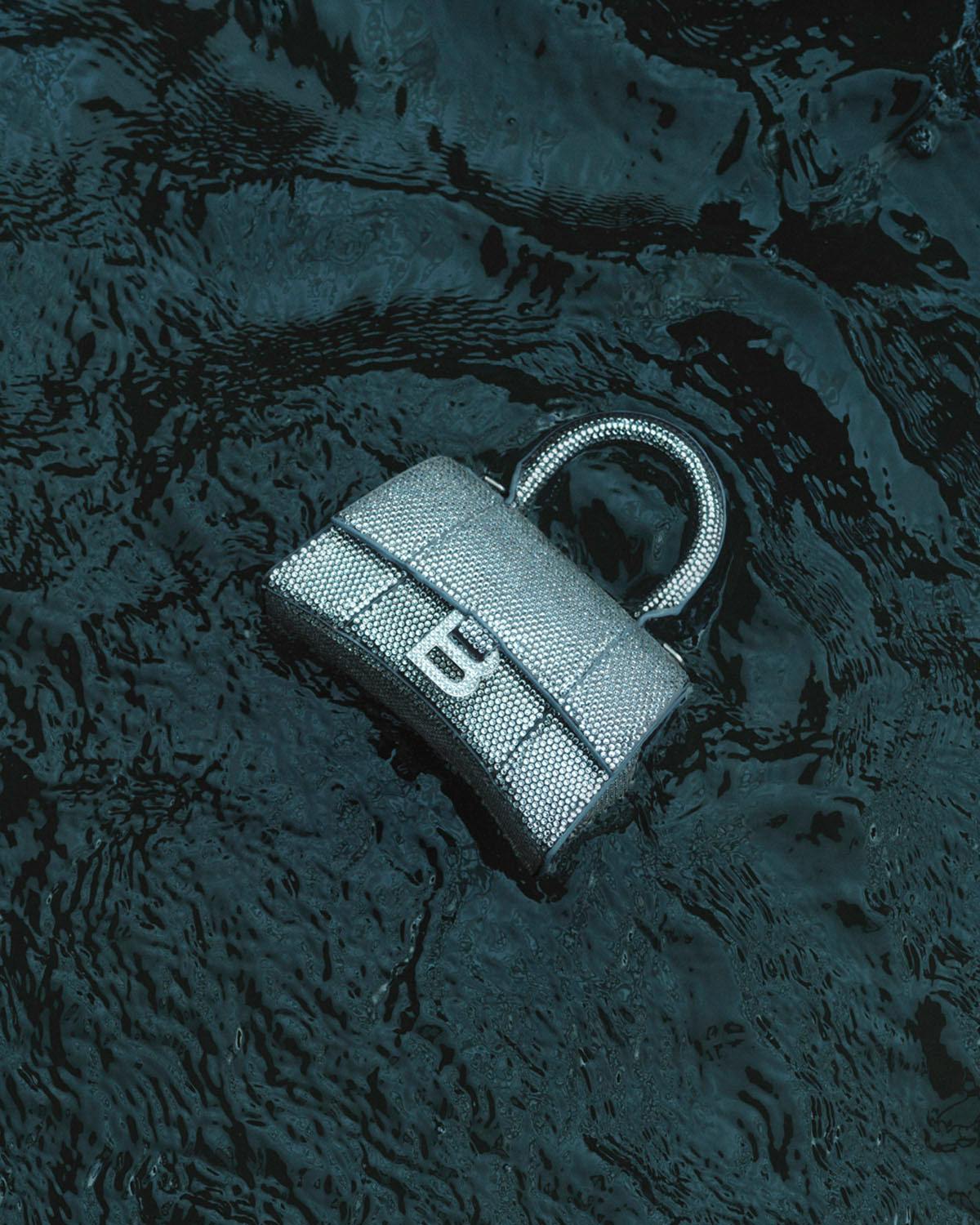 Also included in the seasonal shoot are the LVMH-owned label's rhinestone-encrusted Le Cagole, equally blingy Hourglass, and Croc-like HD sneaker, each lensed on a stylized set both on- and off-model.