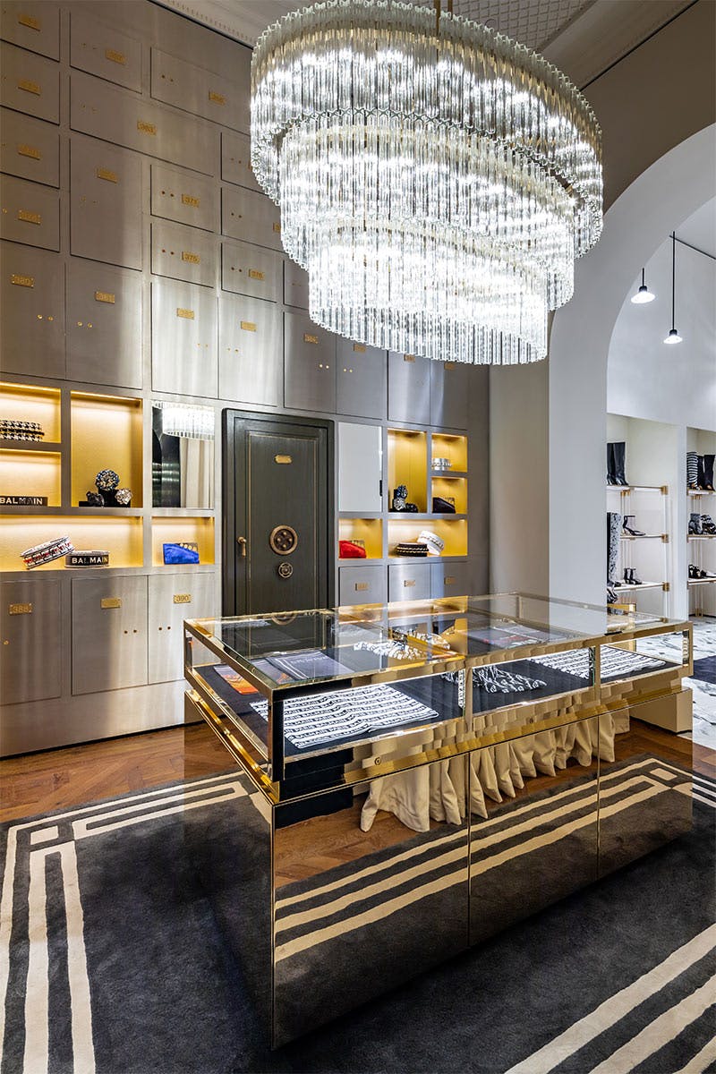 Rousteing set the creative direction for the new flagships and tapped Parisian firm Studio AMV for the architecture and interior design. The studio's previous projects include Rousteing’s own home and Balmain’s headquarters. Run by Victoire, Marie, and Anna, the all-female trio is an anomaly in the gendered world of architecture, making them a logical fit with the brand's powerful "Balmain women".