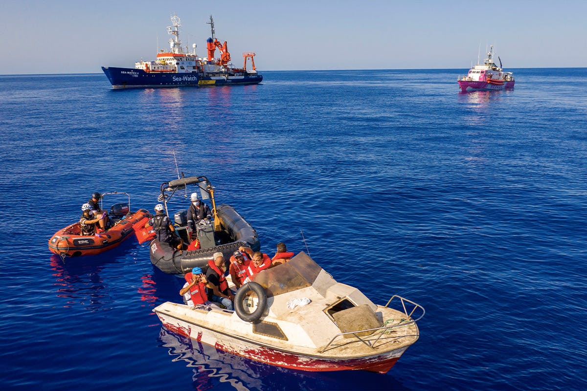 The artist's involvement in the rescue program is purely financial, though. “Banksy won’t pretend that he knows better than us how to run a ship, and we won’t pretend to be artists,” explains the ship's captain, Pia Klemp. The ship's 10 person crew identify as anti-racist and anti-fascist activists, and only female crew members are allowed to speak in the name of the Louise Michel.