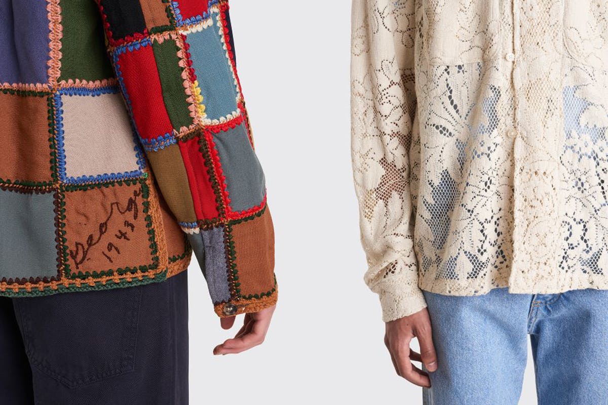 If you're into patchwork, look no further than the dope jumpsuit in blue and striped denim or the eye-catching pants made using different colorful fabrics. Those looking more classic steez can't go wrong with the striped jacket or see-through shirt made using vintage cotton lace.