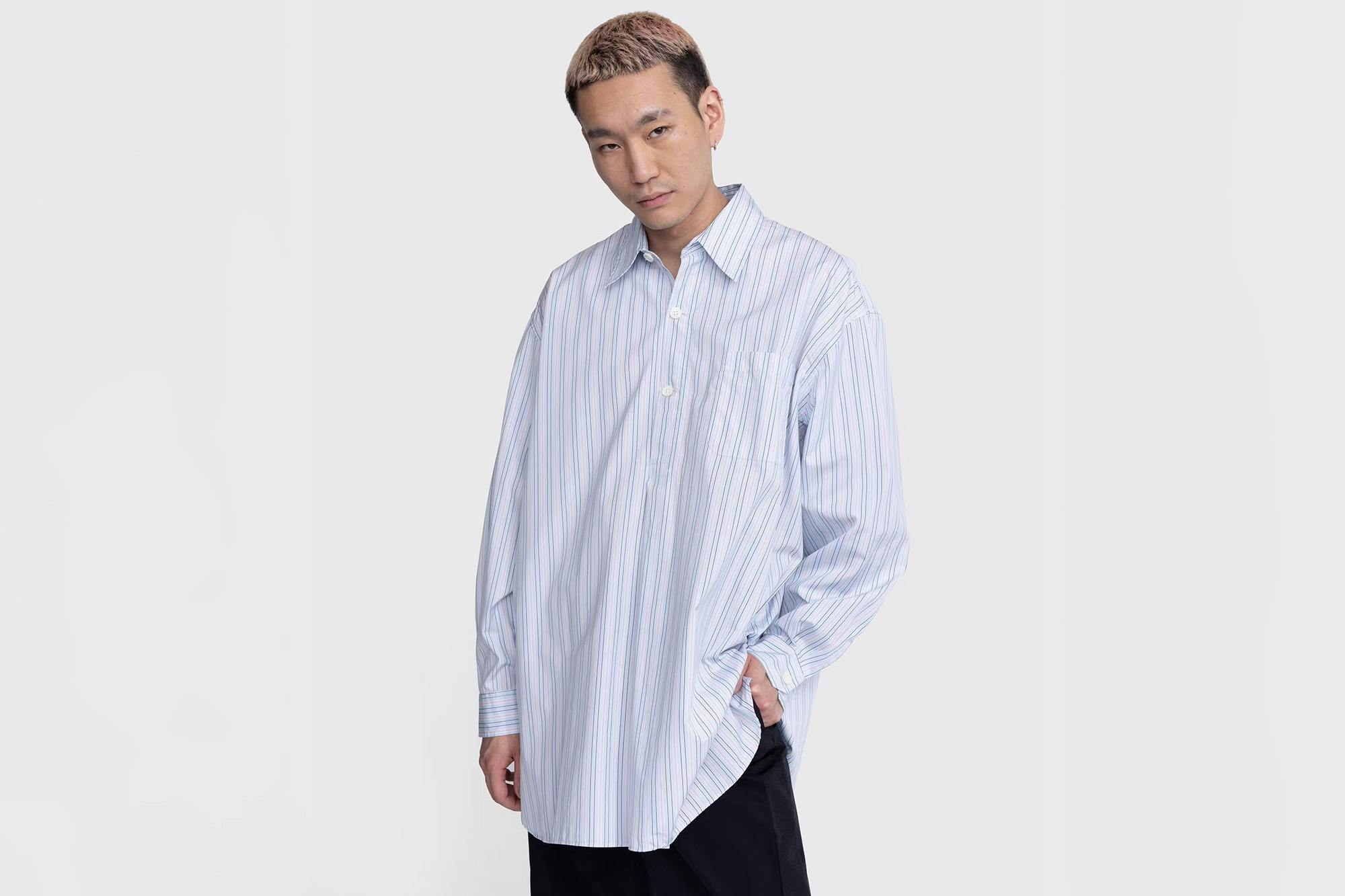 Swedish brand Our Legacy does not play when it comes to making garments truly oversized. Their Popover Shirt is definitely much more relaxed than your traditional button-down. Details like mother-of-pearl buttons, high side vents, and a dropped tail, as a single pocket is incorporated at the left chest, make this one of the best oversized shirts on this list, and an absolute gem in your fall wardrobe. No frills, no extra gimmicks or stitching, just a quality oversized shirt you can wear in any setting.