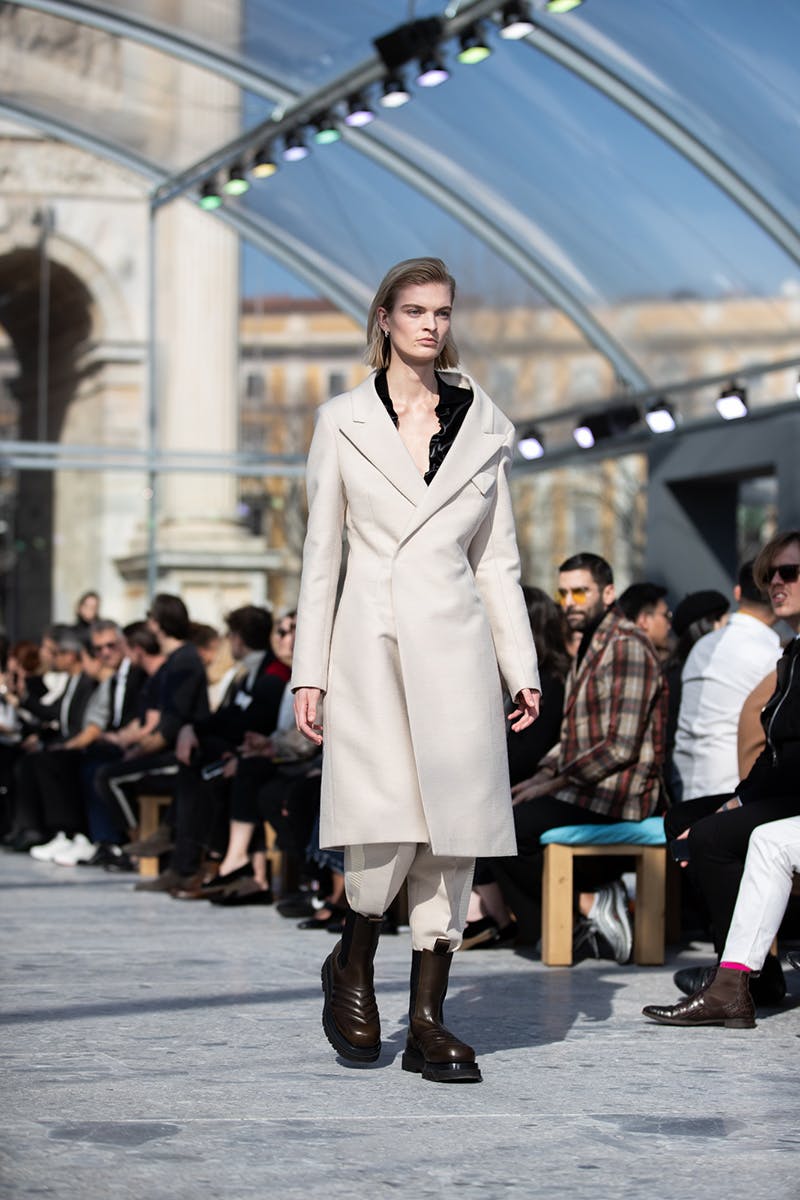 The FW19 show was presented under a giant greenhouse on a radiant Milano morning. The transparency felt symbolic, laying everything bare for the audience to see with no gimmicks or conspicuous branding. Here was classic Italian craftsmanship designed for a customer whose concept of luxury doesn't need to be spelled out for everyone to see.