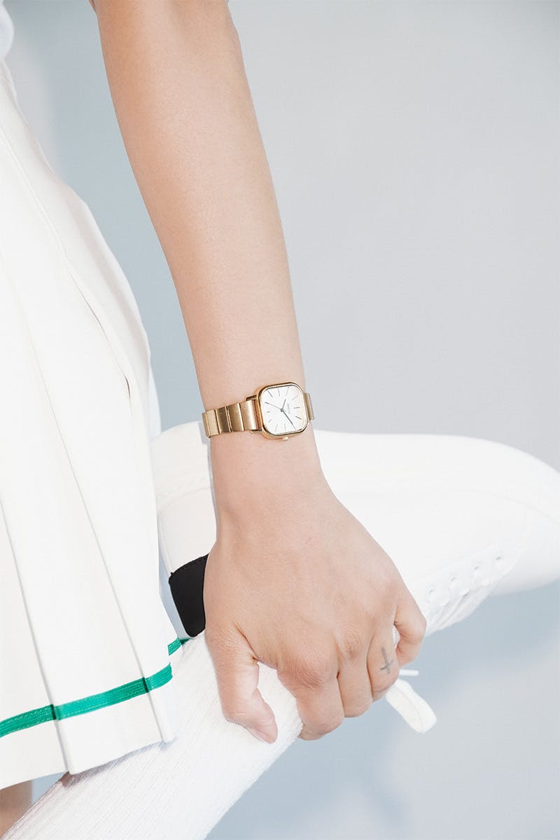 As the name suggests, this retro-style timepiece is inspired by the work of artist Carel Nicolaas Visser whose work explored the relationship of bold shapes in space. Visser’s gold-plated stainless steel five-link bracelet goes beyond trend and occasion, fitting as comfortably with streetwear as tailoring. A 35mm square face boasts a striking brushed gold dial to complete the classic style.