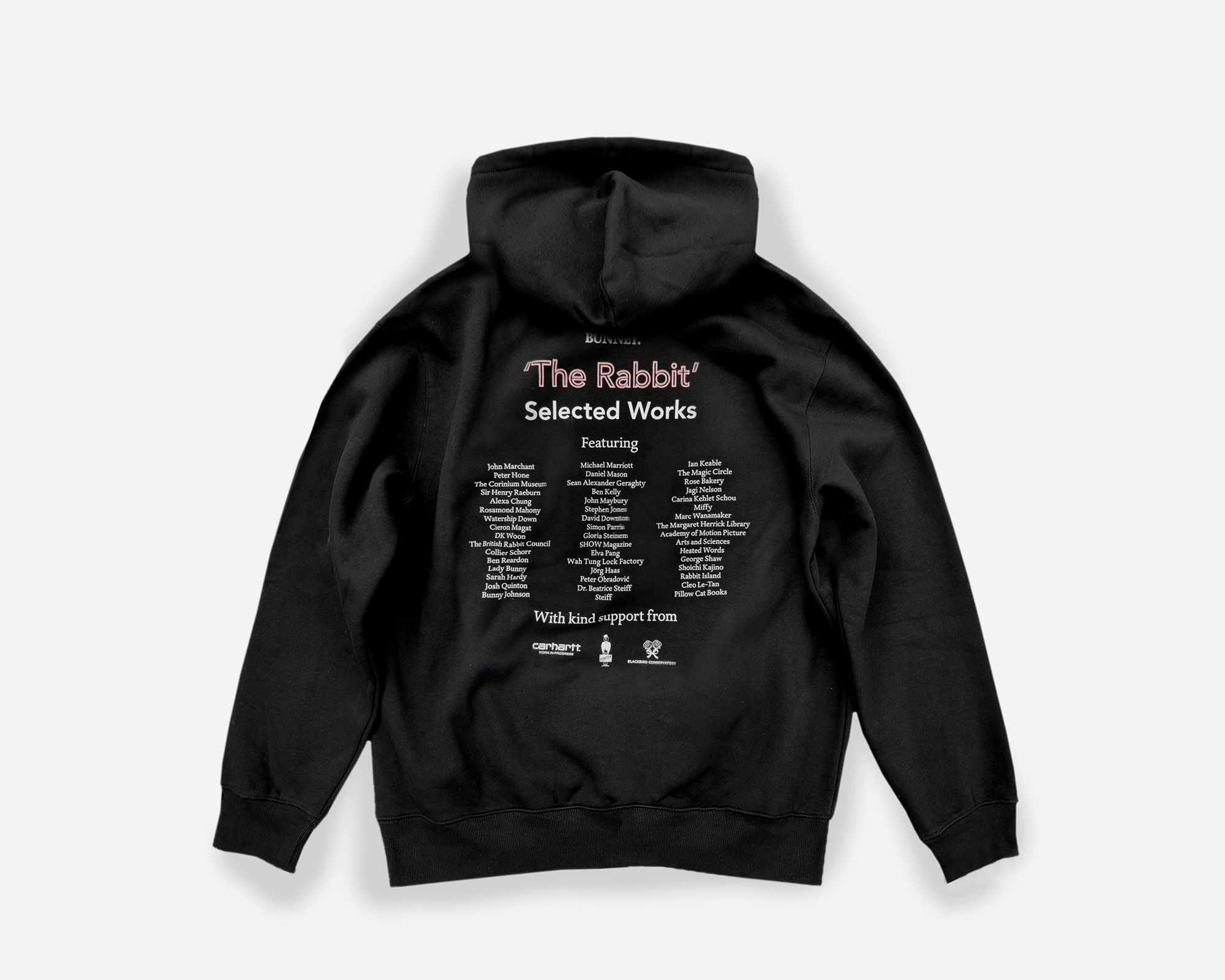 Accompanying the text is a selection of collaborative items created with PORTER and Carhartt WIP, longtime friends of the brand, who've created bespoke printed wearables and a magazine (or carrot)-sized tote that'll be offered on-site alongside a selection of Bunney's own exquisite finery, including special Selected Works badges and rabbit-shaped coin banks.