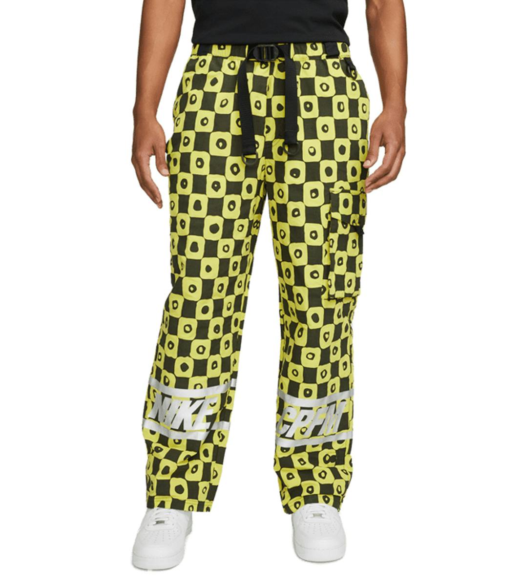 The Cactus Plant Flea Market x Nike collection — which lands on October 27 at Nike SNKRSs — wraps up with bright yellow checkerboard trousers wrapped with reflective-tape branding and a quarter-zip-up fleece jacket packed with patchwork details (more Nike fleece for the win!).