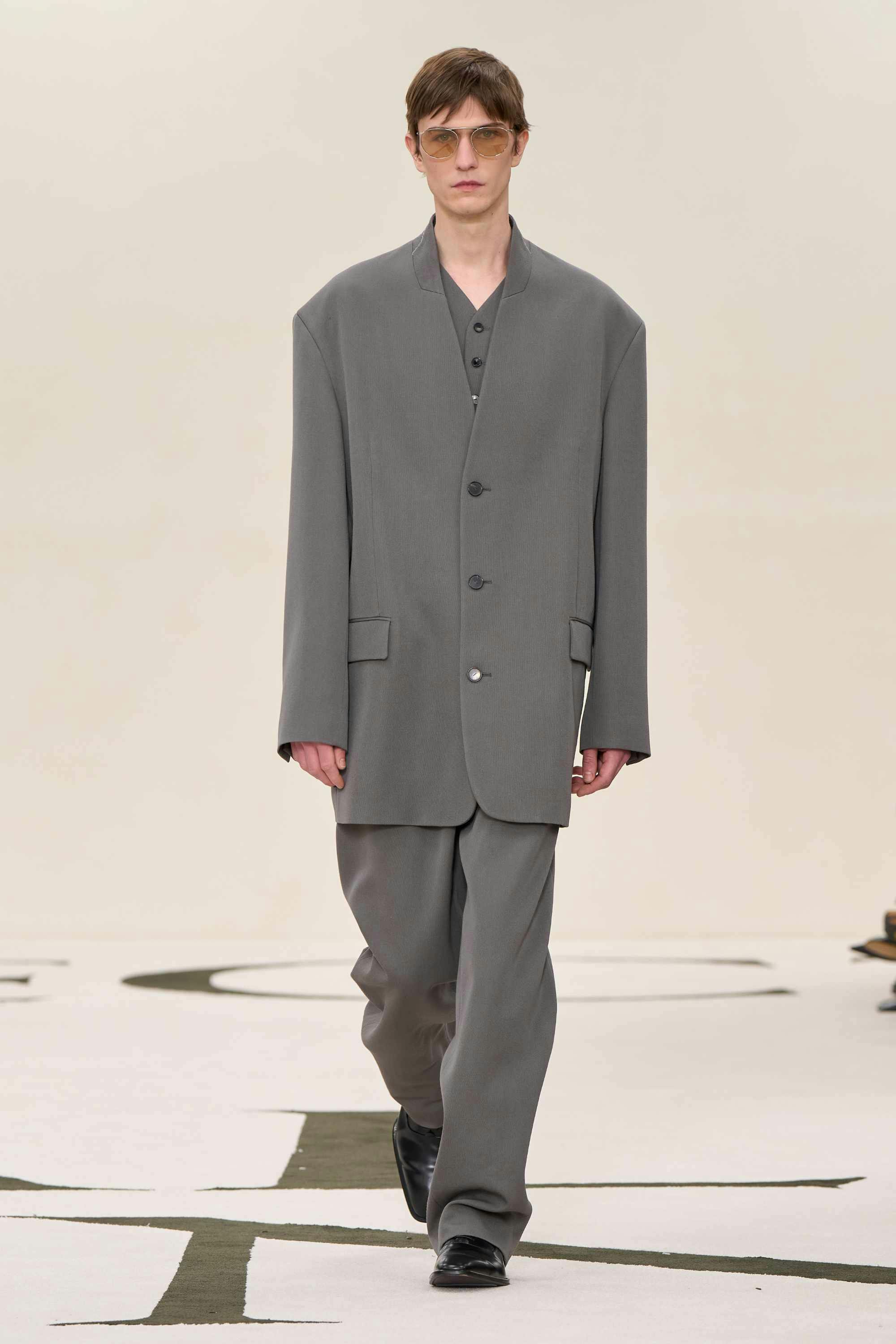 Grounded but hardly boring. Way too many wool capes, masterpiece leather jackets, and draping pajama-style sets to be boring. One wool coat was so perfectly structured, so textured and shapely, that it could've been sculpted by Beuys.