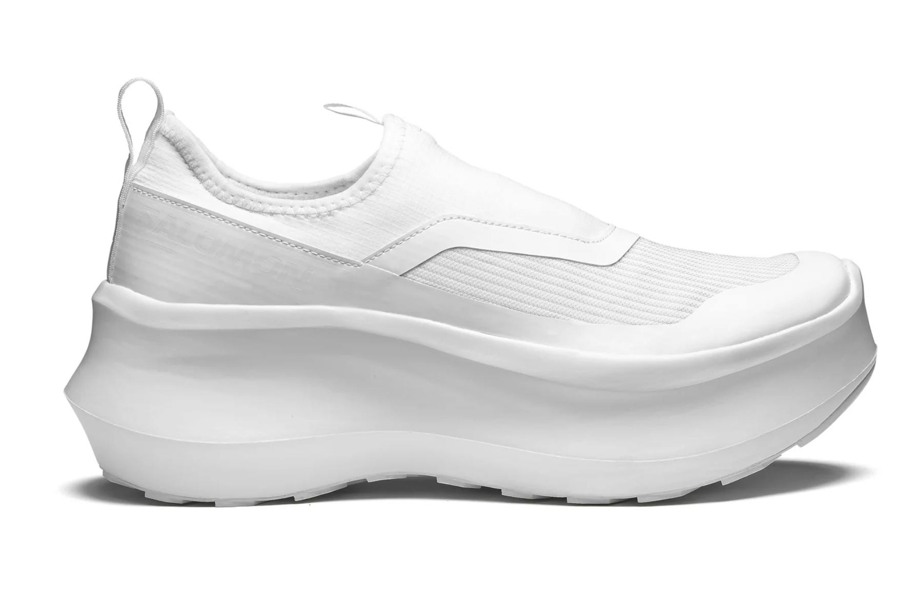 The CDG x Salomon Slip-On Platform comes in two monochromatic white and black colorways and while clearly designed for comfort, may come in handy for those fibbers who have been slightly exaggerating their height, such is the midsole’s size.