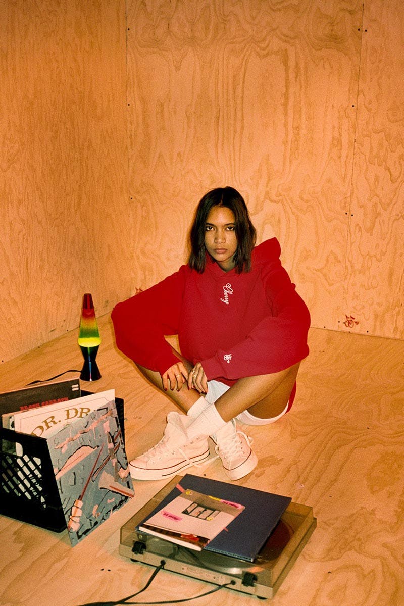 Key Pieces: The pink hoodie with contrasting tie-dye hood is the collection's unifying piece and definitely the standout.