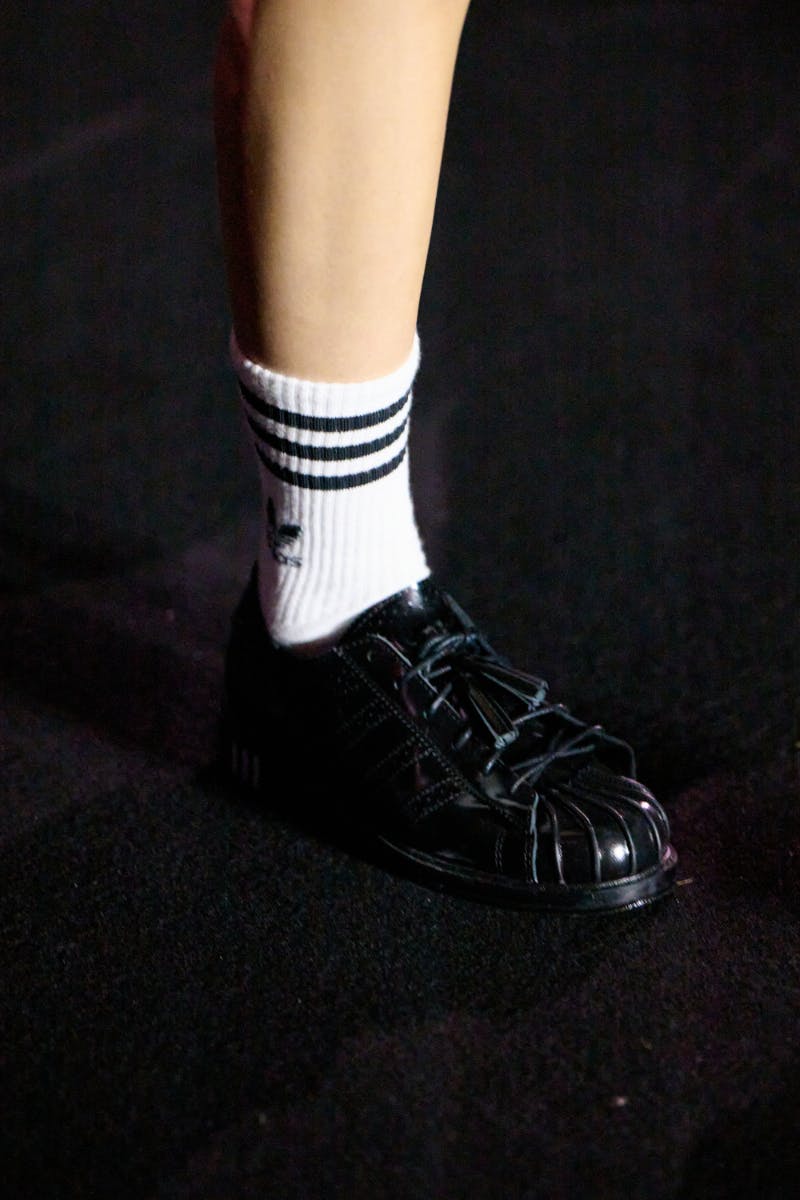 CLOT x adidas' footwear was particularly eye-catching. CLOT's Superstars boasted shark teeth soles, while other spins saw the adidas classic reimagined as a leather-constructed dress shoe topped with kilties. Classy and fitting for when you have a meeting at 4 but a Run DMC concert at 5.