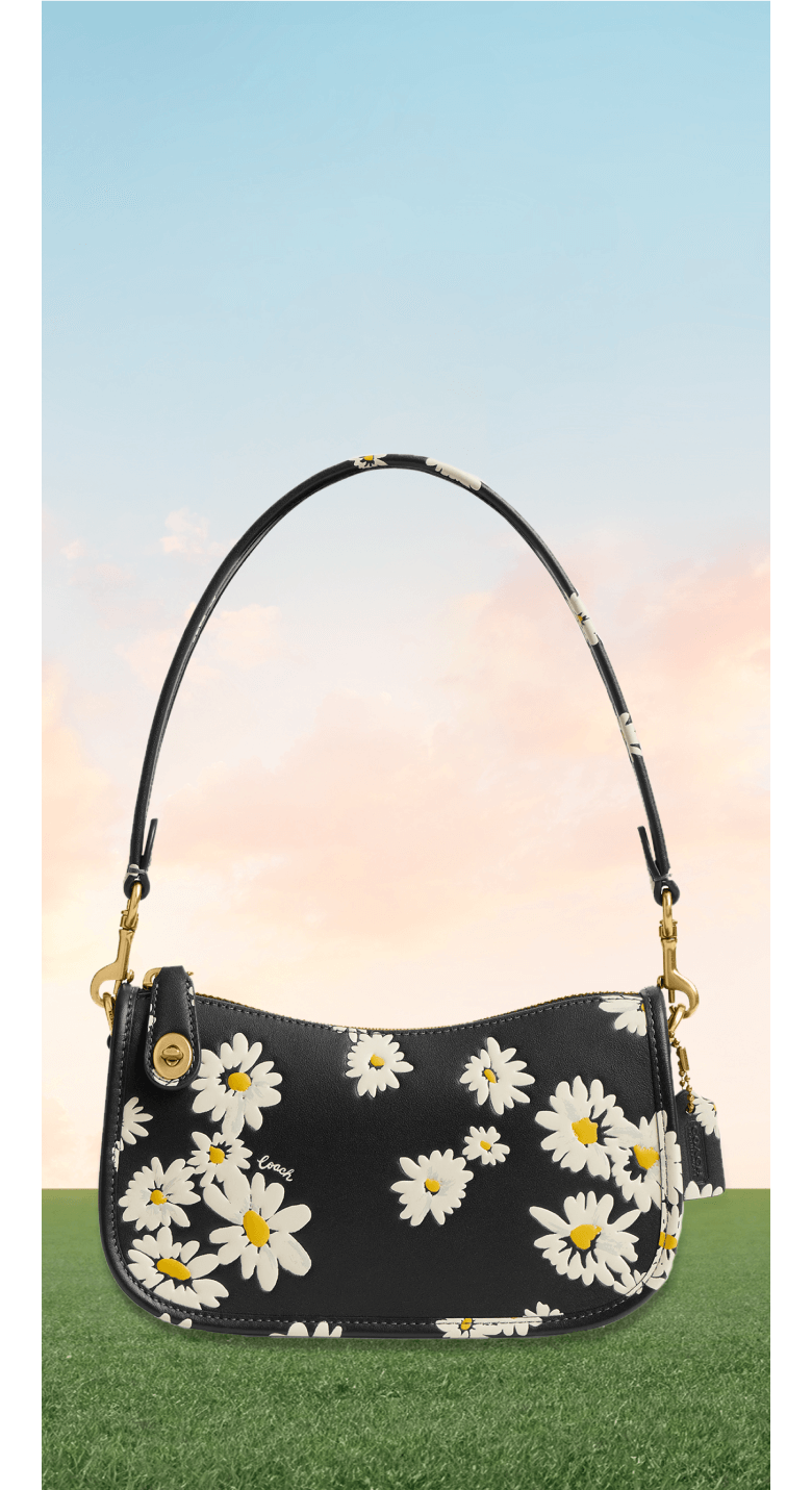 Puns aside, our fave virtual influencer, imma returns in the latest release of Coach’s five-level campaign, Find Your Courage, and boy, is she blossoming. She’s so close to “realness”—but not quite there just yet. Under the guidance of expert evolver and onscreen chameleon, Camila Mendes, the bot journeys through a series of self-reflections in a flowery garden amongst the futuristic New York landscape. The episode reads like a beautiful self-help book entitled something along the lines of “Don’t be scared! Keep growing!” With a daisy-printed Tabby slung over her shoulder, Mendes fearlessly leads the charge towards metamorphosis and imma follows suit, self-actualization at stake.