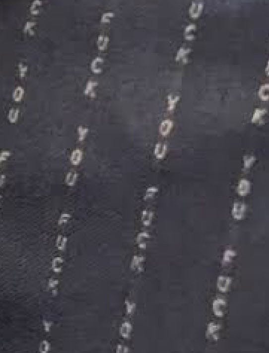 After facing off for the first time today, keen-eyed viewers of the press conference might have noticed that Conor McGregor utilized the pinstripes on his suit — designed in a "Fuck You" pattern — which can be only interpreted as the first major shot fired in what promises to be an all-out war of words. See below: