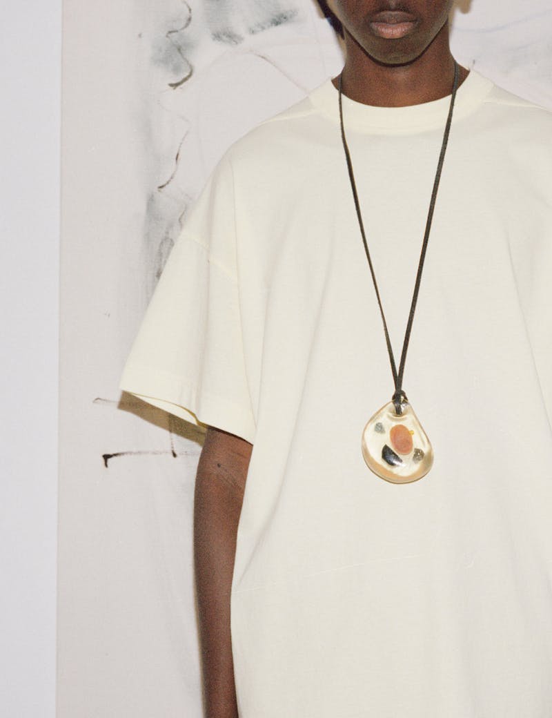 Alongside these exclusive shirts, each of which come in only one size, is a selection of timeless staples made in Italy to the designer's high standards. These include boxy-fitting tops, flowy shirts, and a shiny nylon bomber jacket. Check them out below.