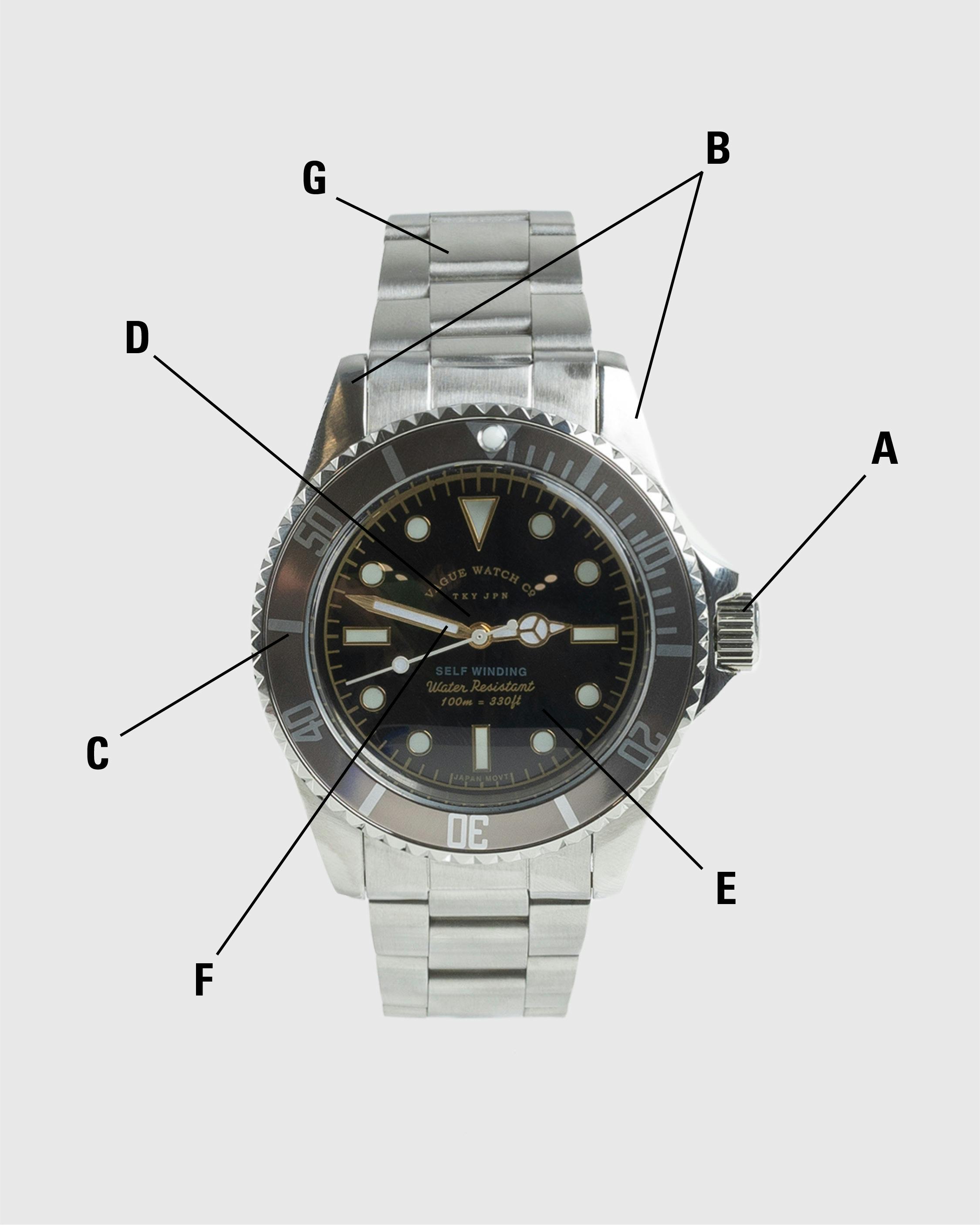 G. Strap - Made from leather to ceramic, this part of your watch secures it to your wrist.