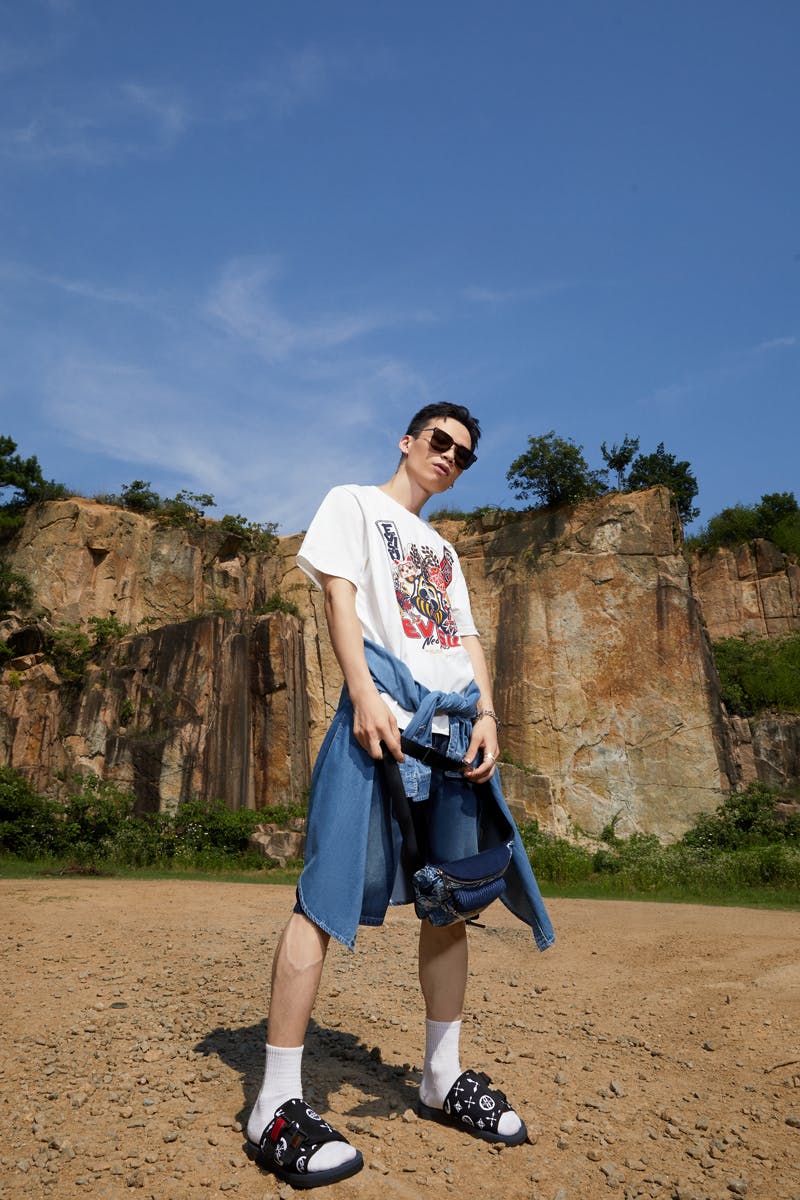 Editor's Notes: Evisu made a comeback in a major way thanks to CEO David Pun, who gave an unprofitable legacy label its second wind when he took over in 2010. Evisu allured a new generation of famous fans and even some streetwear collaborations in recent years and its looking to keep the momentum going with footwear brand Suicoke, coming together for a pair of co-branded slide sandals.