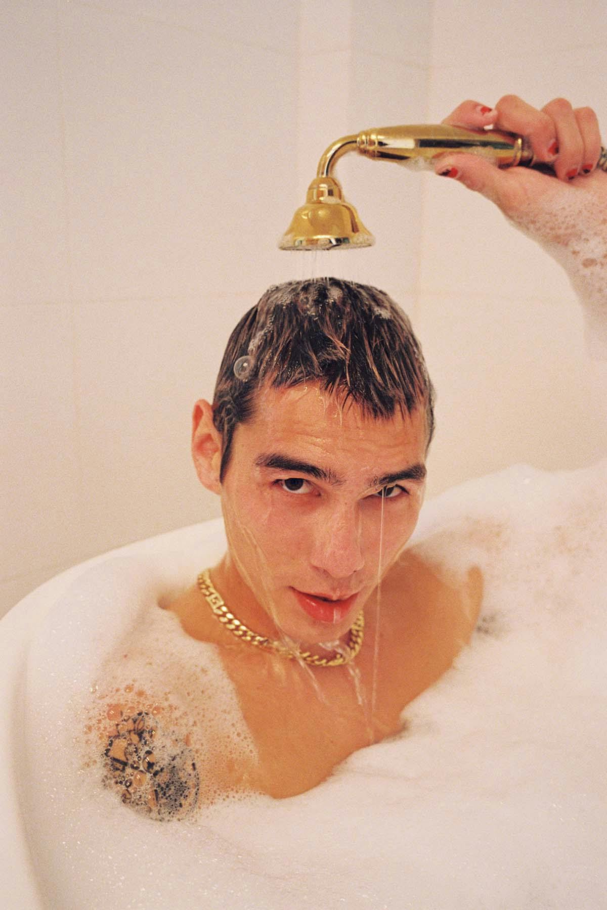 Kicking things off at The Line LA, the artist wakes up, hops in the bath and is ready for a wholesome morning…at the club? No matter the time of day, he’s fit for the occasion. Dawning one of the collection’s most distinguished pieces—an adapted print from the Fendi archives—Mock is sure to make a lasting impression.
