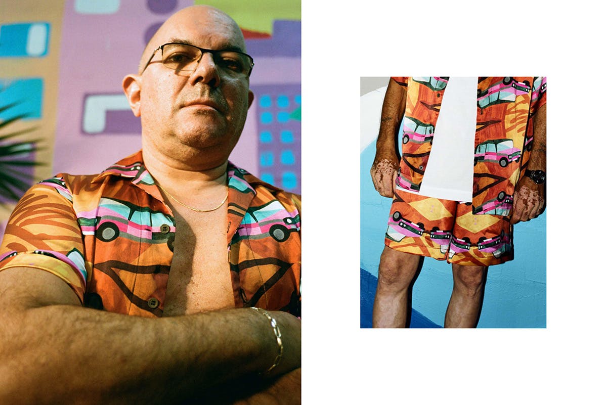 As the lookbook above shows, the summer collection boasts a range of graphic tees, racing jackets, shorts, Hawaiian shirts, and even a vintage car or two, if you're interested in copping. The capsule primarily sticks to blocked, neutral colors with smatterings of patterned items for a little southern European color and flair.