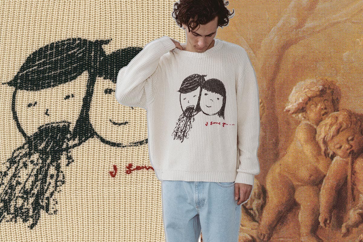 The collection features everything from monogrammed puffers to bucket hats and balaclavas. It’s a bricolage of patterns, textures, graphics, and colors. It’s cozy and eclectic, but not in a dad’s sweater collection type of way.