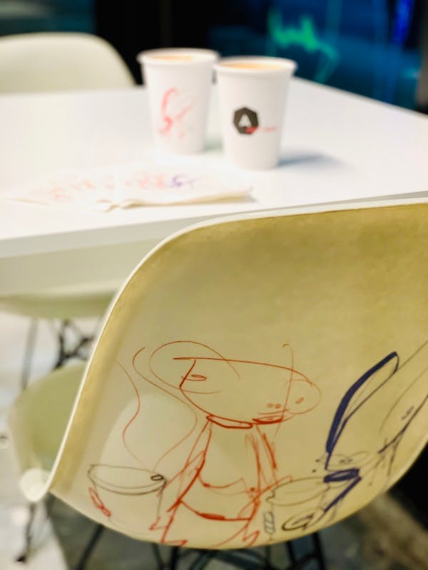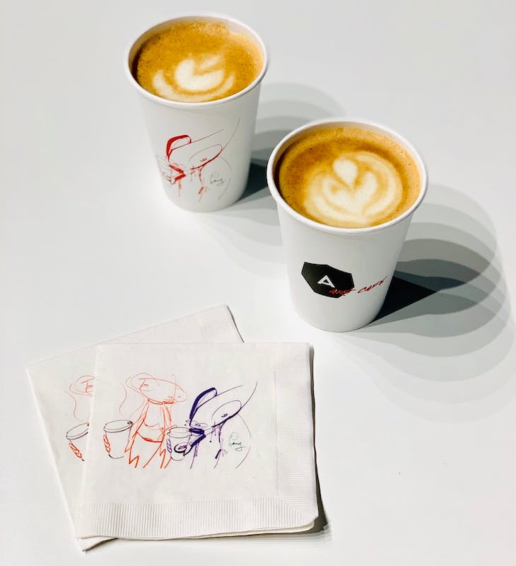 The legendary artist handled all the branding for the Alchemist Art Café, a one-week pop-up in Miami for Art Basel. His graphic of two of his caricatures holding cups of joe appear on Modernica Side Shell Eiffel Chairs exclusive to the shop, as well as their cups and napkins. But more importantly, you can take home the freaky little coffee enthusiasts thanks to a 7-piece capsule of merchandise available that includes coasters, a mug, and thermos.