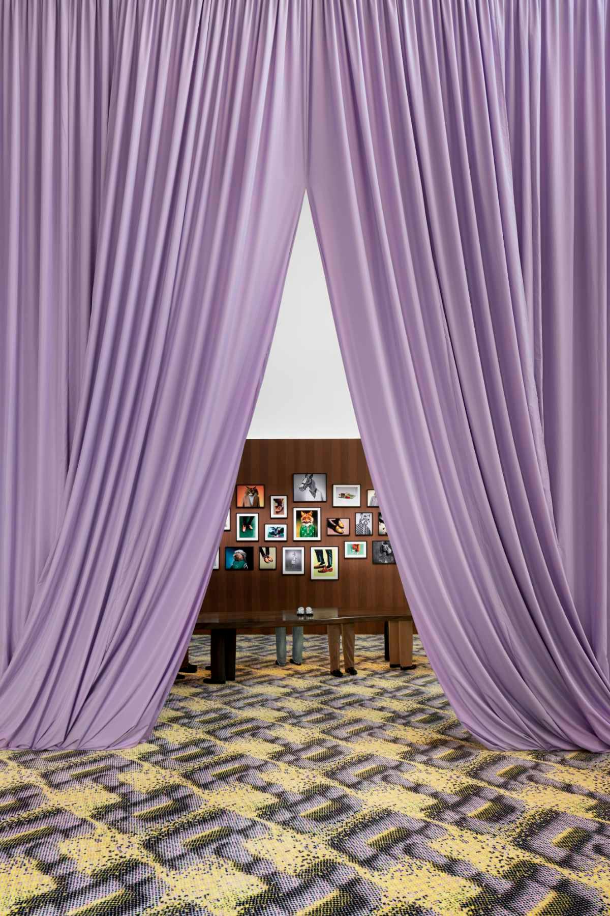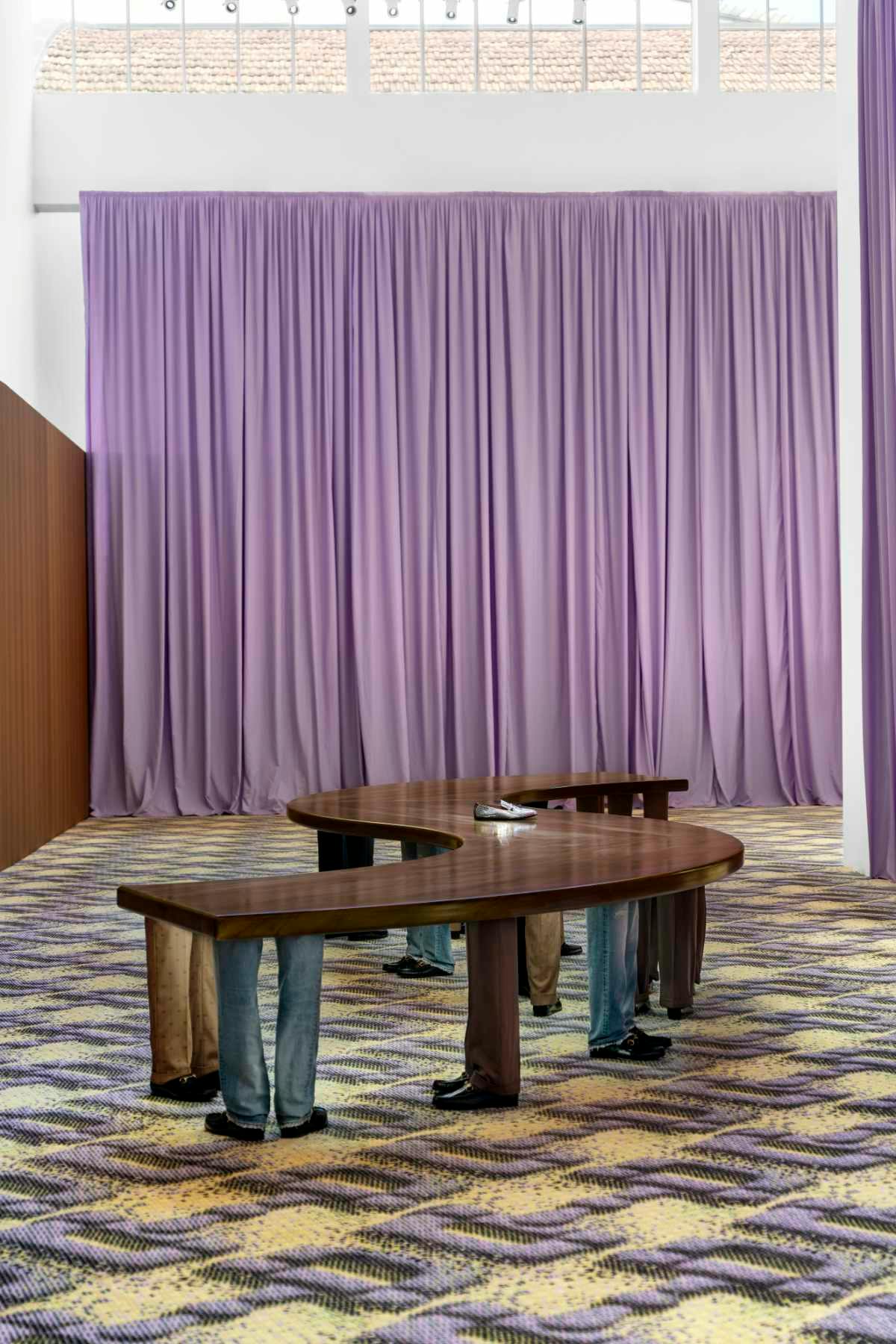 For instance, Crosby Studios' Harry Nuriev devised furniture that plays fast and loose with Horsebit inspiration, sculptor Pitterpatter envisioned a table held aloft by a series of Horsebit-shod legs, and, in the screening room, artist Bolade Banjo's historical exploration of the Horsebit's legacy plays on a loop.