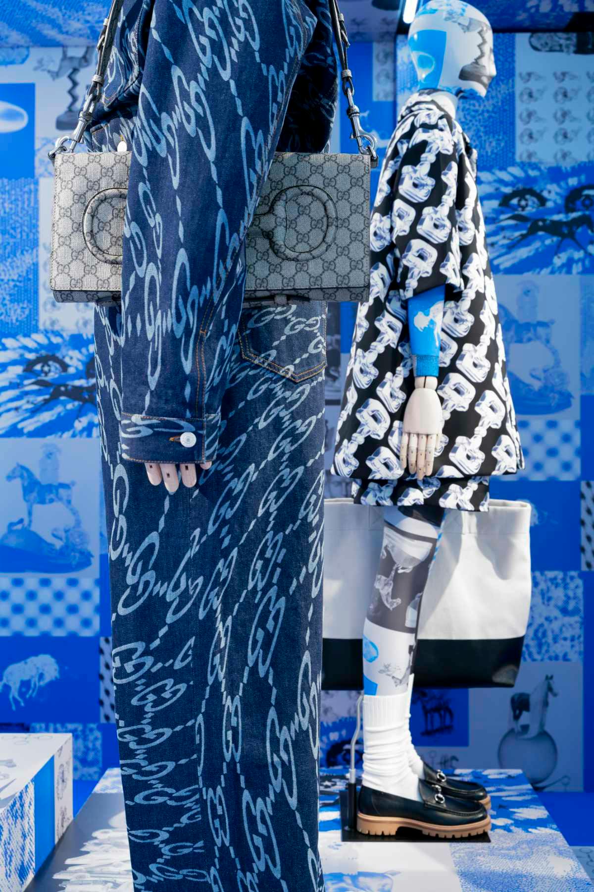 Throughout, Gucci gear is on full display. There's a bevy of new-season stuff from Gucci's Spring/Summer 2024 menswear collection — the recent MLB collaboration and exclusive Vault drops are separate endeavors — displayed alongside Horsebit Loafers from all eras.