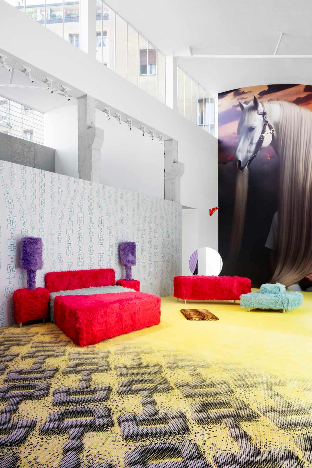 Spazio Maiocchi creative director Alessio Ascari helped curate Gucci's event, which encompasses a series of stylized spaces that each house Horsebit-inspired artworks.