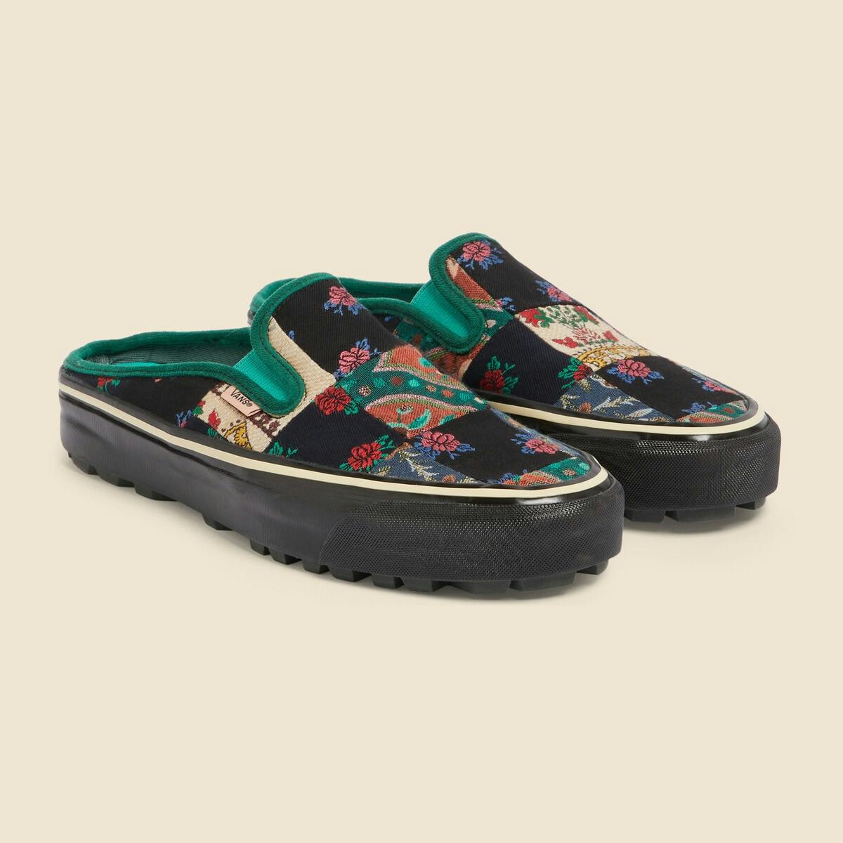 The Gucci x Vans collab comprises five unique styles sold through the Gucci Vault's website — a Guccified Old Skool, OG Mule, and three Slip-Ons. Each is described as unisex but there's only smaller sizes available (read: US 6-10, with a few 11s in there) though Gucci Vault Continuum isn't a collection of singularly womenswear pieces.