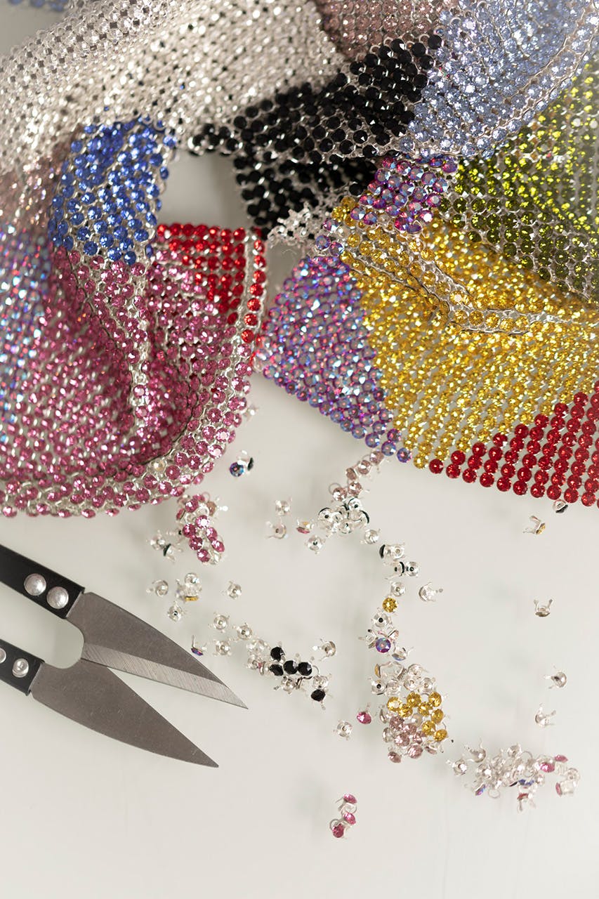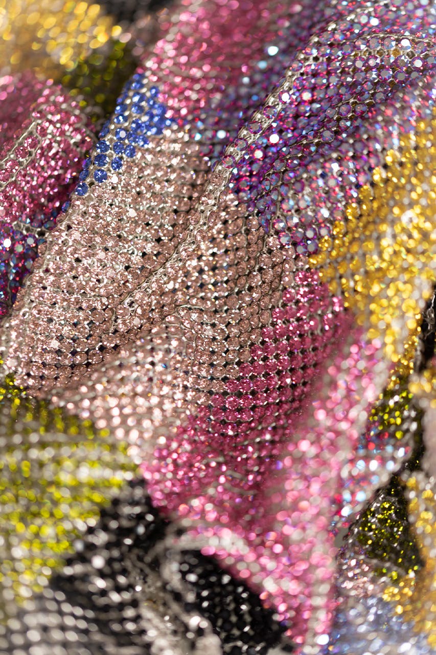 The jumpsuit — which was custom-made with a plush crystal mesh — features no less than 250,000 Swarovski Crystals in nine different colors and was handmade in Paris over a 150 hour period.