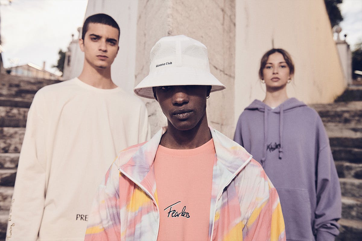Under the capsule name of Fearless, PREACH has produced a summer-ready collection drenched in pastel tones, featuring references to Havana Club, photographic prints, and PREACH's signature handwritten touches. Experimenting with the idea of 'repainting the old walls with new ideas'. A Havana Club collaboration would of course not be complete without a re-working of their iconic Havana Club 7 rum bottle label, which PREACH has done expertly. Incorporating a distinctly harbor side tile graphic and reworking the famous Havana club Giraldilla statue logo that is also featured throughout the collection.