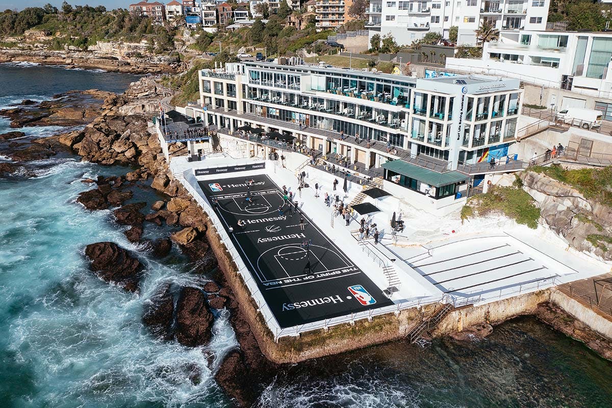 Hennessy and the NBA recently turned Icebergs Ocean pool at Bondi Beach into a pop-up basketball court combining artful design with the energy of the NBA. This marked the kickoff to a series of Hennessy x NBA events happening around the city. Check out the video above and pictures below for a closer look.
