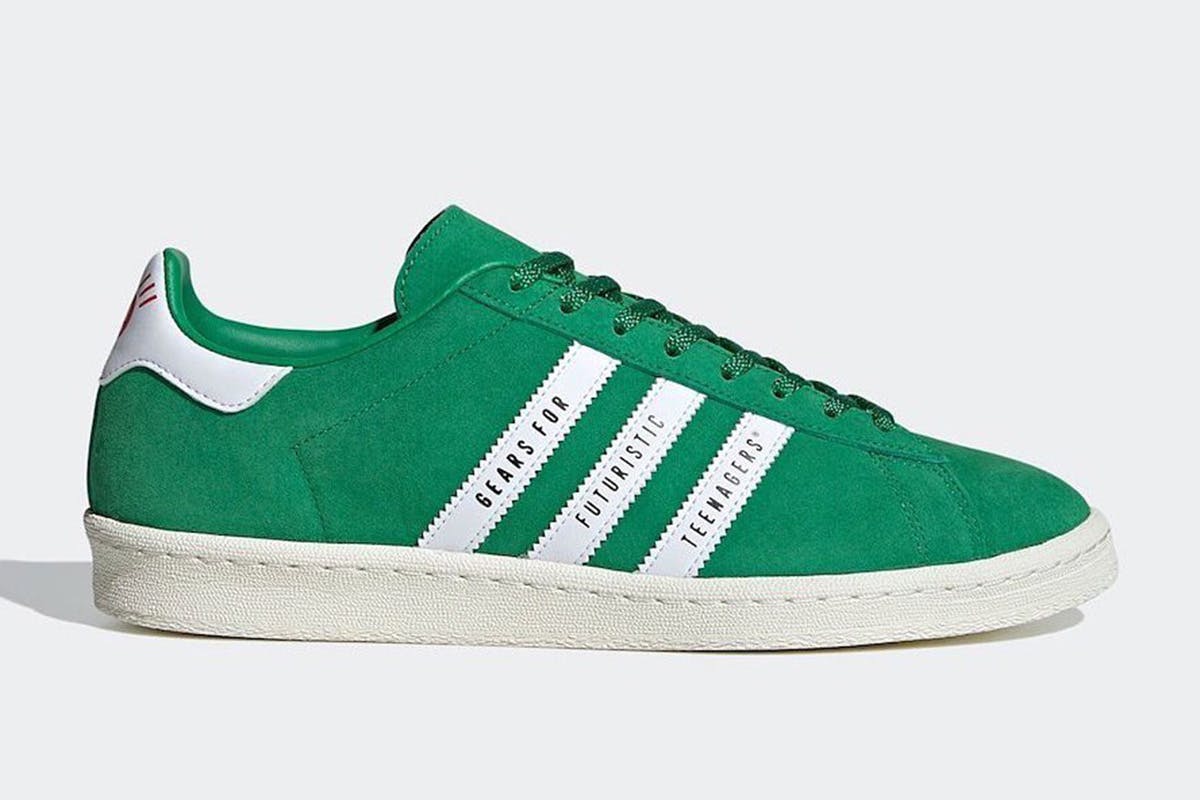 The Human Made x adidas Originals Stan Smith features a leather construction in either white/grey, white/green, or all-black. A red Human Made heart logo is seen on the lateral side, while text branding is present on both the heel and the tongue. The Human Made x adidas Originals Campus arrives in three tonal, suede colorways — green, blue, and grey — and features the former’s slogan “Gears for Futuristic Teenagers” emblazoned along the Three Stripes branding (similar to the Superstars that dropped earlier in April).