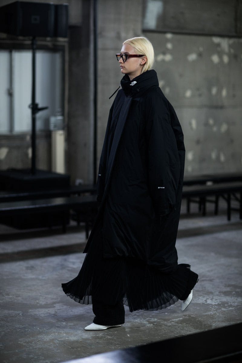 Editor’s Notes: Japanese womenswear label HYKE showed its FW19 collection at Amazon Tokyo Fashion Week today. Designers Hideaki Yoshihara and Yukiko Ode ("HYKE" is a portmanteau of their first names) presented military-inspired, asymmetrical womenswear alongside a hotly-anticipated collaboration with The North Face.