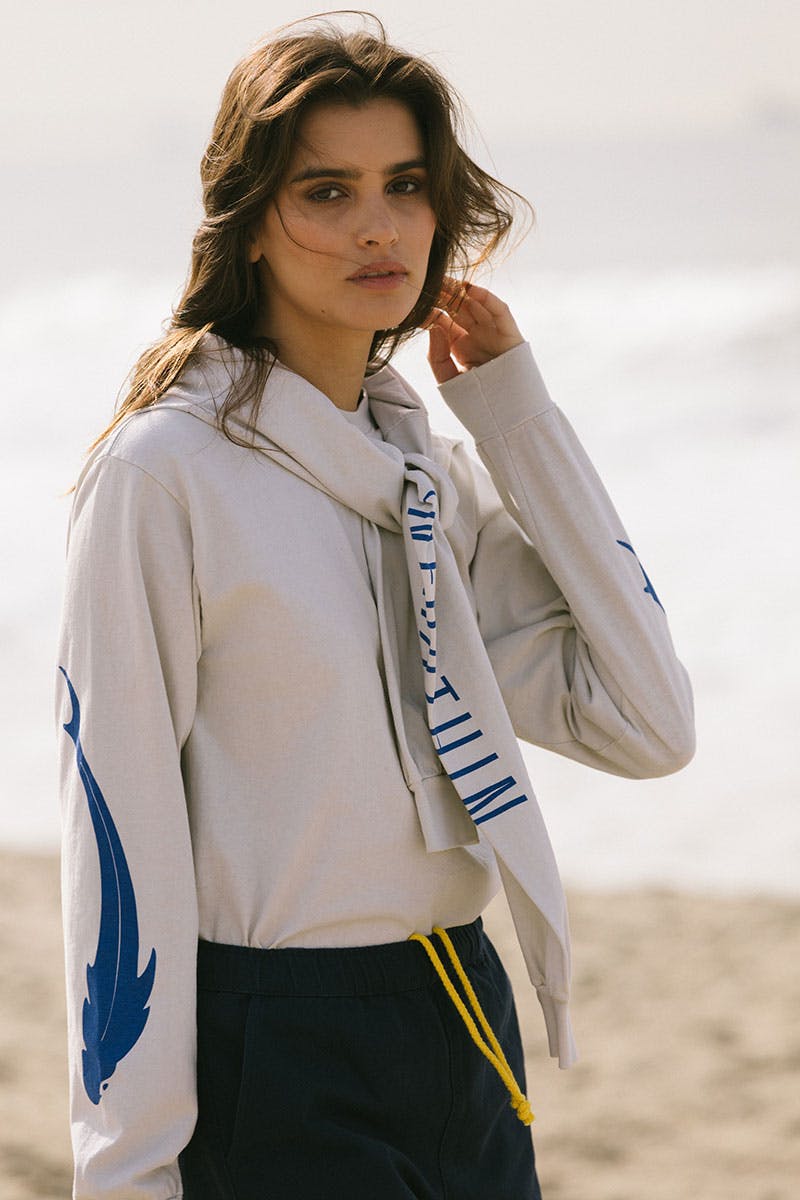 Artist and recurring Louis Vuitton collaborator Alex Israel chose the brand name Infrathin because the sentiment evokes the things he loves about life and art in Los Angeles. His new range of made-in-LA tees and sweats includes images of a grinning avocado, a cartoon pelican, a fish, and a wave graphic from Israel's own work.