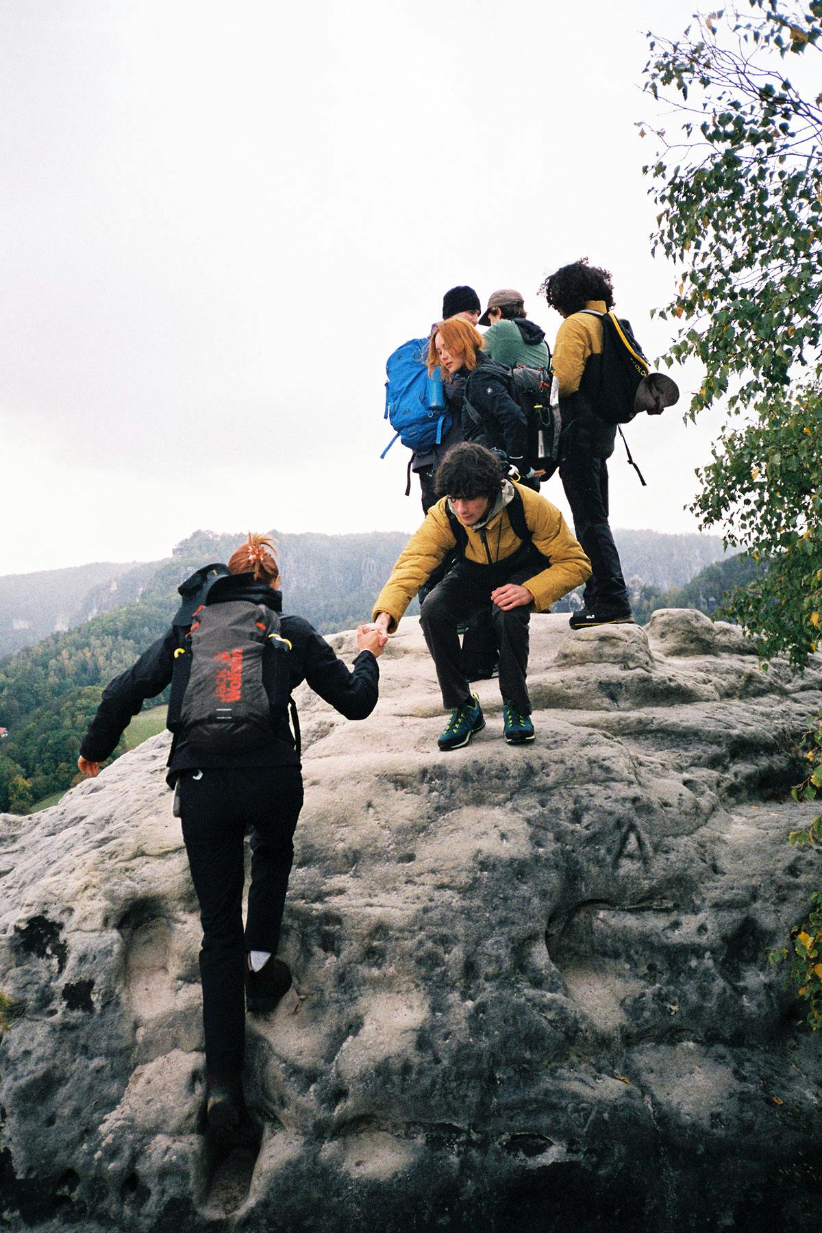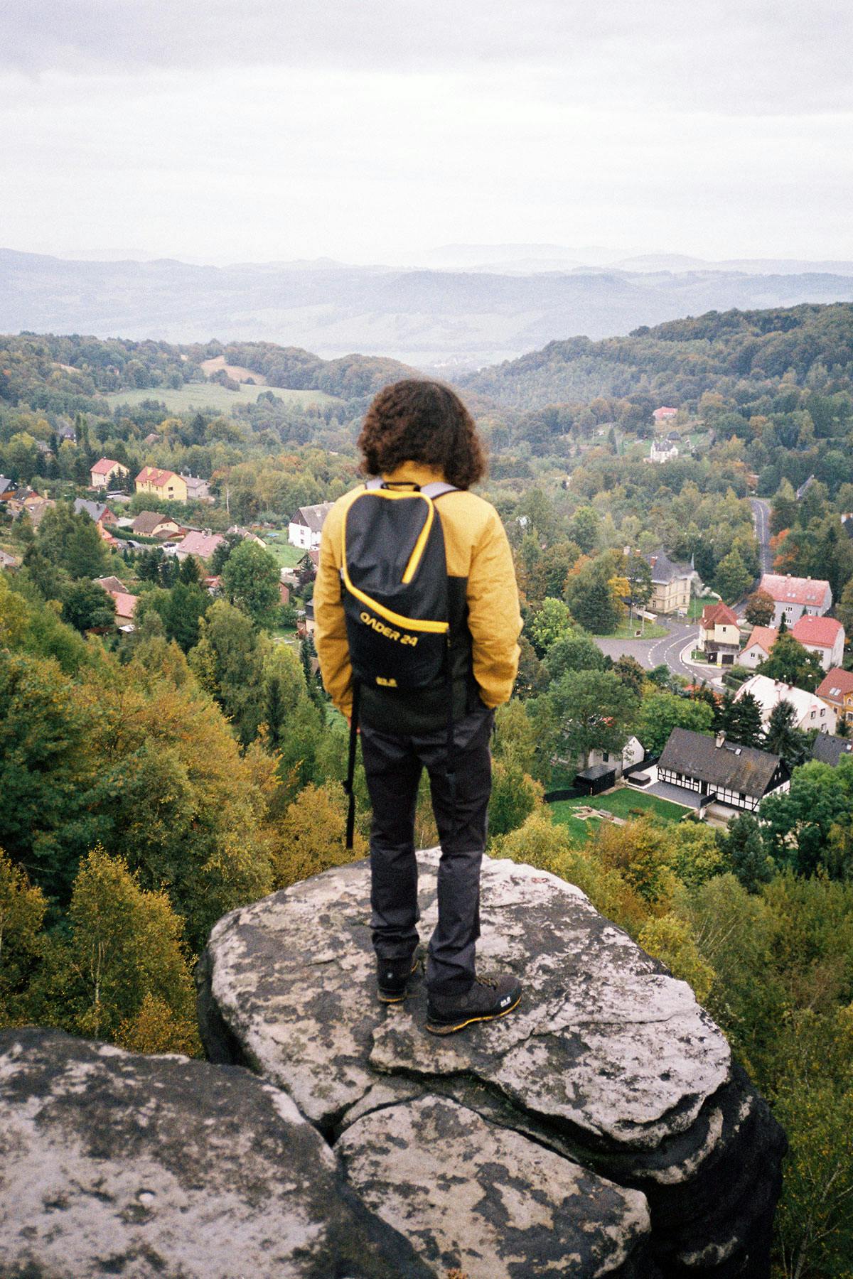 Photographer, model, designer, and skater – Steffen Grap is a central figure in Berlin’s creative scene. Born and raised in Berlin but accustomed to working with clients from further afield, for the team up with Jack Wolfskin he looked close to home for his adventure. “Germany offers so many amazing must-visit natural landscapes scattered throughout the country, why not take advantage of it,” he said. With a group of friends, he headed to the Elbe Sandstone Mountains that run the border with the Czech Republic for three days of hiking, climbing, and camping.