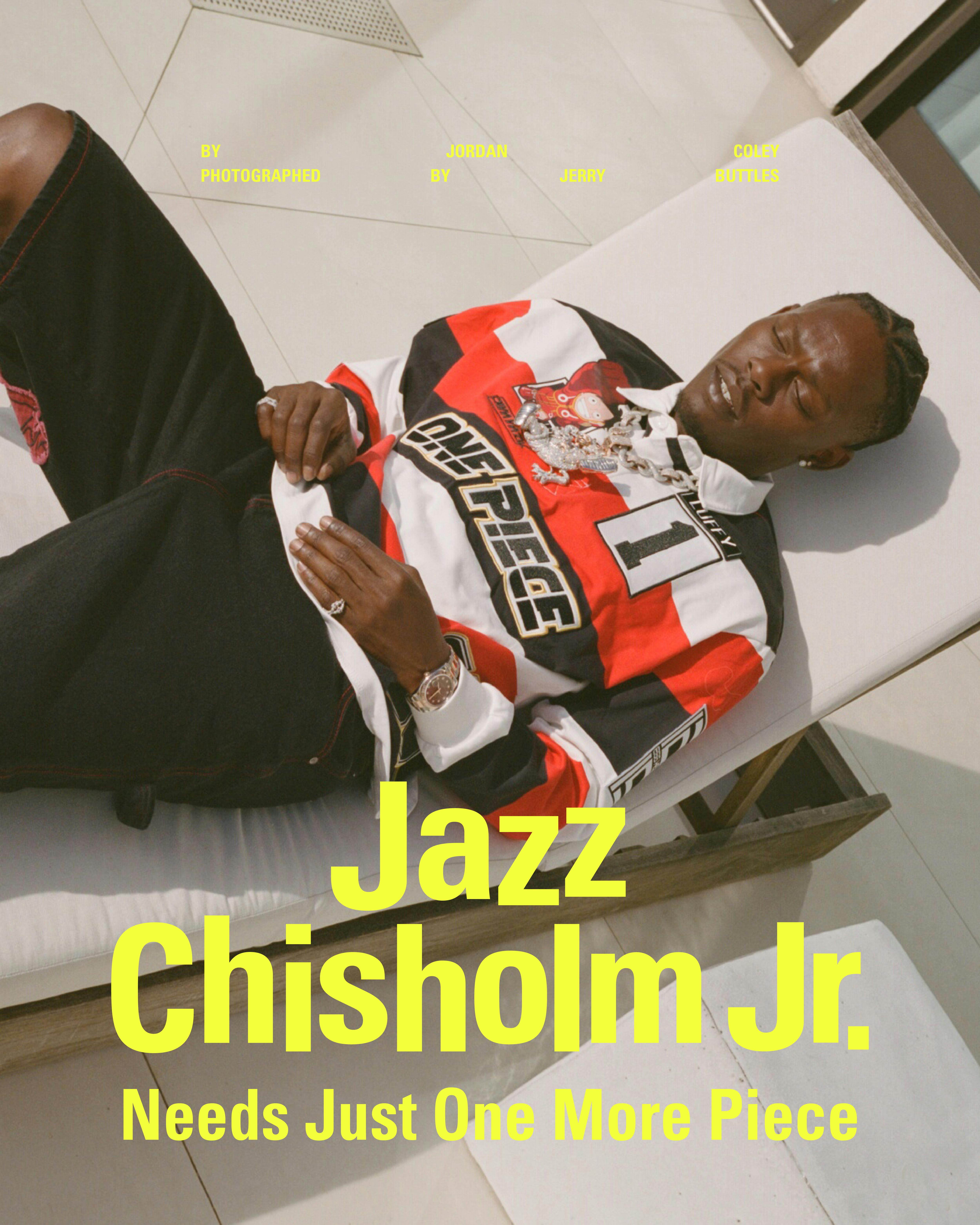 Instead, Chisholm has made the sport feel like him. He’s brought the tunnel fit swag of the NBA and the NFL to a league most known for its dogged uniformity. This has been perhaps most pronounced in his choice of jewelry. The All-Star has a taste for the finer things — an iced-out Audemars Piguet, an array of Rolexes, including two-tone Datejusts and gold Presidentials. He’s got chunky, diamond-encrusted bracelets, and of course, the pièce de résistance: a custom bejeweled chain with a mammoth pendant depicting “Luffy,” the main character in Chisholm’s favorite anime, One Piece.