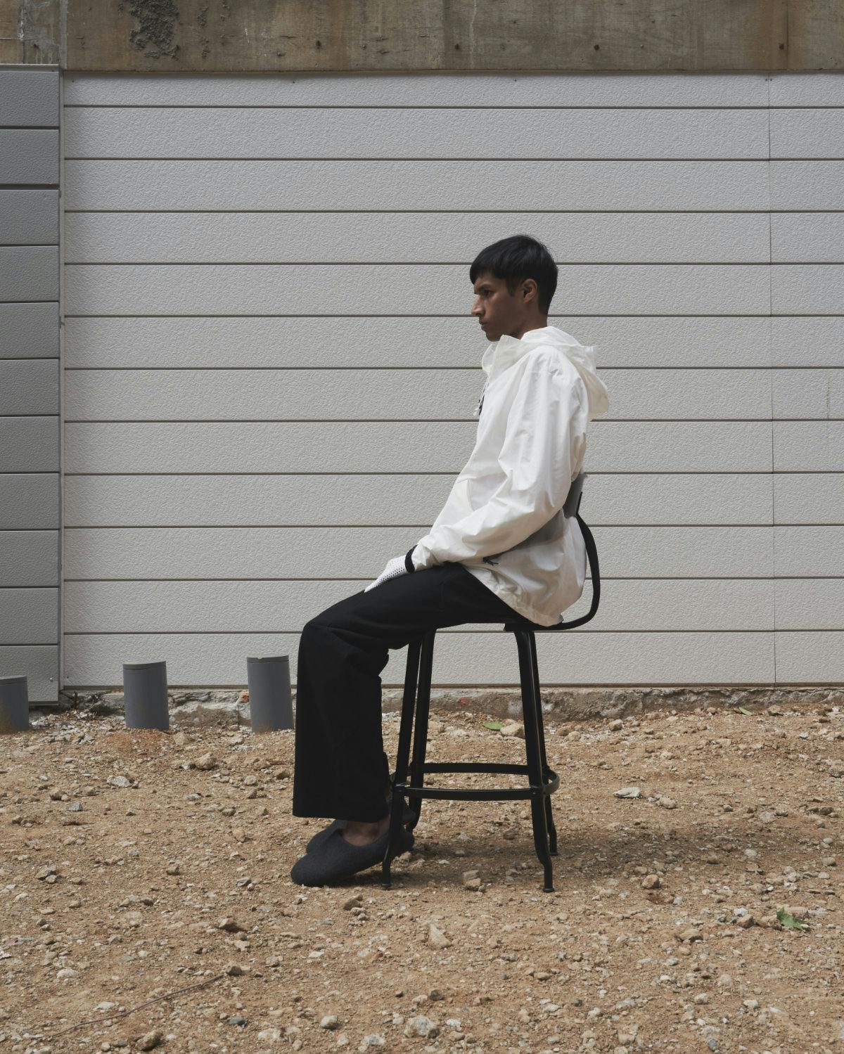Shot against urban landscapes dominated by grey concrete, the location of the photos: "hint at prior, unexplained events that seemed to have taken place at each site, with _J.L-A.L_’s technically designed and functional apparel relating to the idea of a guardian spirit, protecting the wearer from the elements," according to a statement by the brand.