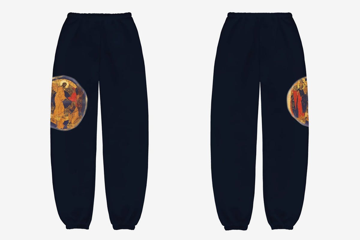 The latest Jesus Is King merch bundle includes short-sleeve T-shirts in white, navy, and grey colorways; a grey long-sleeve T-shirt; two crewneck designs in white and navy; and sweatpants in white and navy. Jesus Is King branding is featured throughout the collection, in addition to "Sunday Service," "New York," and various iconography.