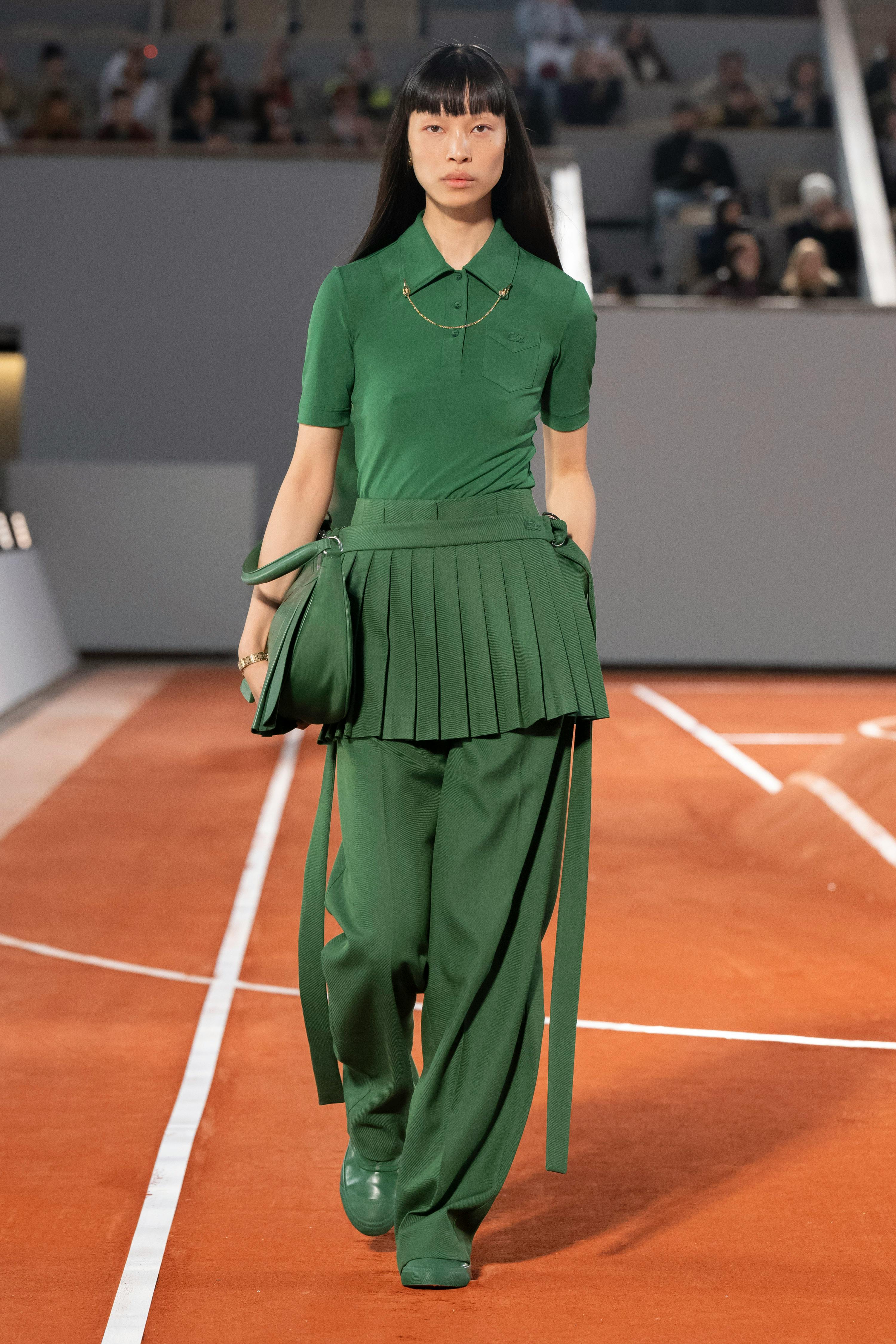 Kolotouros' Lacoste FW24 honors the label's roots, instilled by founder and tennis champ René Lacoste. It pairs general tennis references with nods to the 1920s French art and fashion scene. In bridging these elements together, Kolotouros gave us classic, chic, relaxed, sporty, and lots of pleats.
