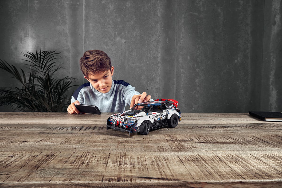 The LEGO Technic CONTROL+ app controls the vehicle, allowing you to remotely steer and take advantage of multi-touch and gyro control. The rally car comes with a large motor, XL motor, and one Bluetooth controlled smart hub.
