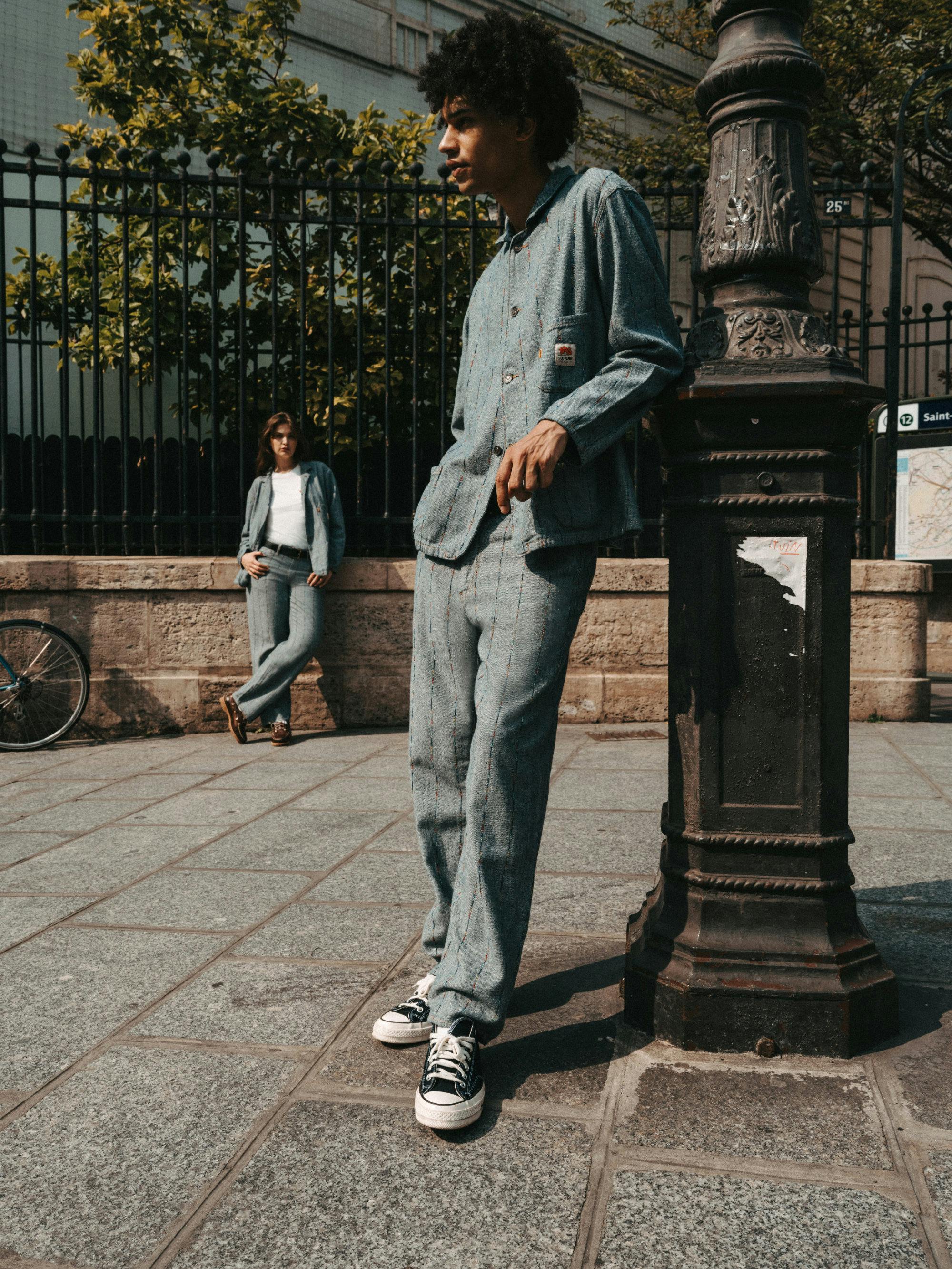 Honoring Levi’s workwear roots, the collection includes a work jacket, an overall top, and straight-leg jeans in light blue denim. It’s a noticeable departure from the nylon-heavy sportswear Pigalle was previously known for.