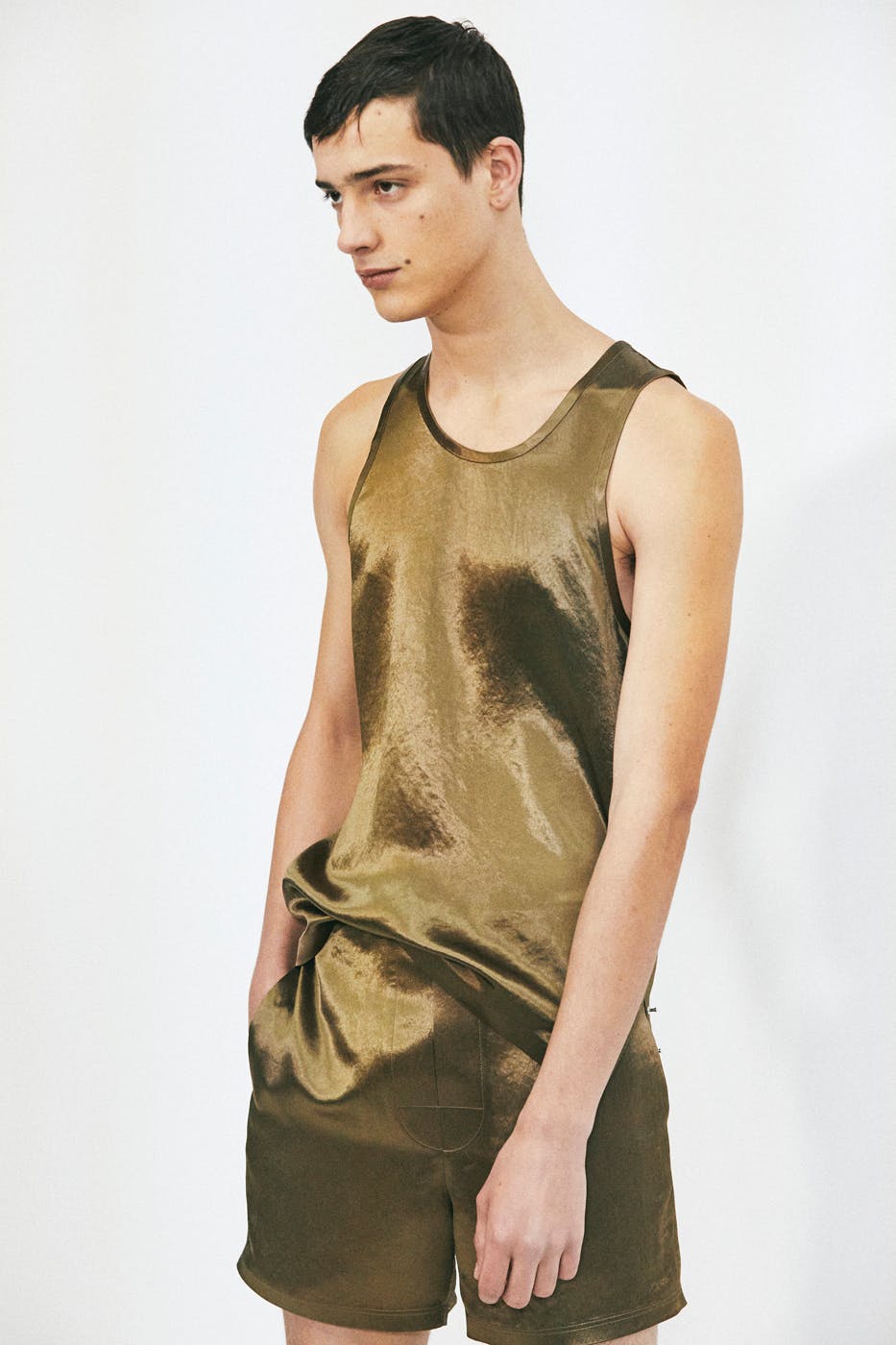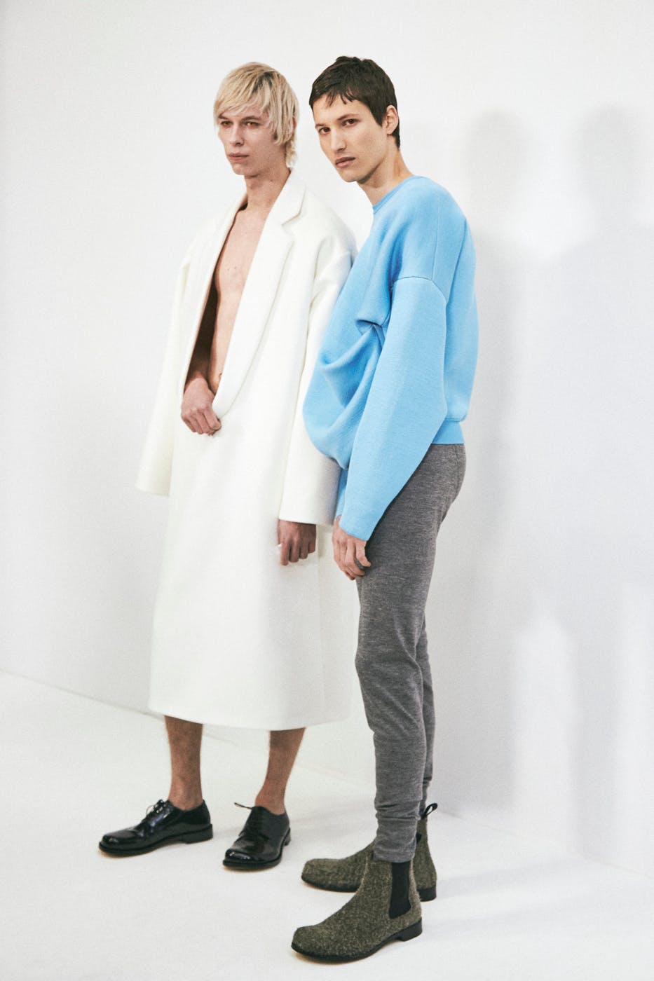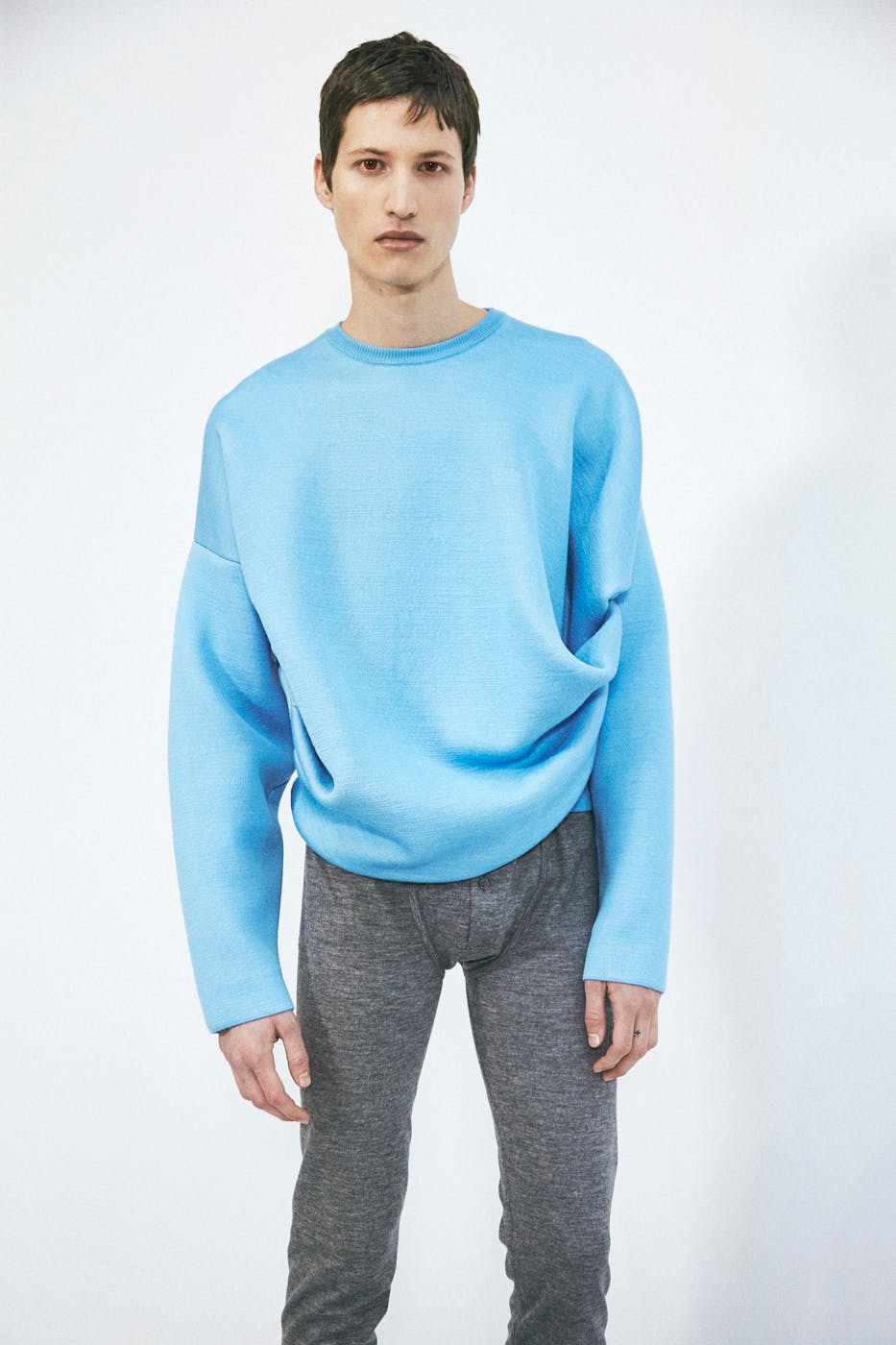 These layering pieces make so much noise that Anderson seems to have opted to remove pants from the equation. Hardly any models had much of anything on their lower torsos. There were some tiny shorts here and mélange long johns there but only a scant few models wearing baggy trousers.