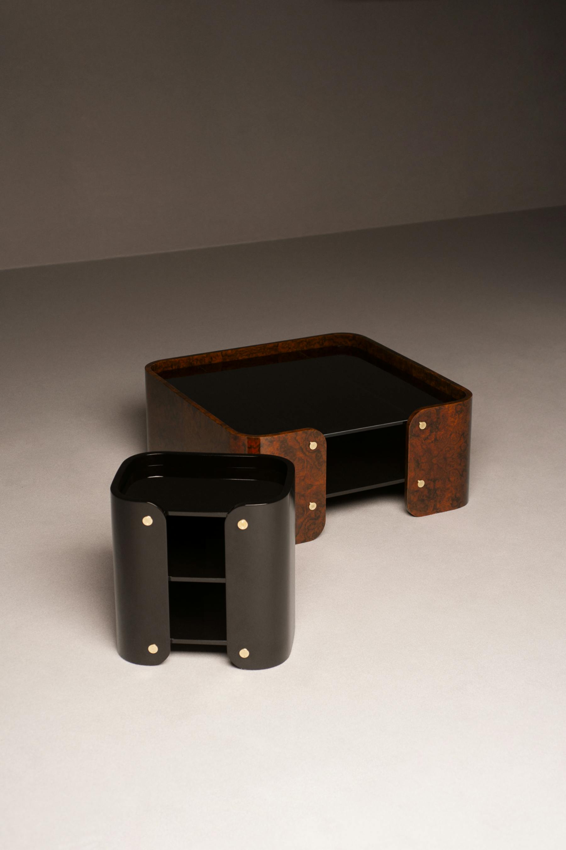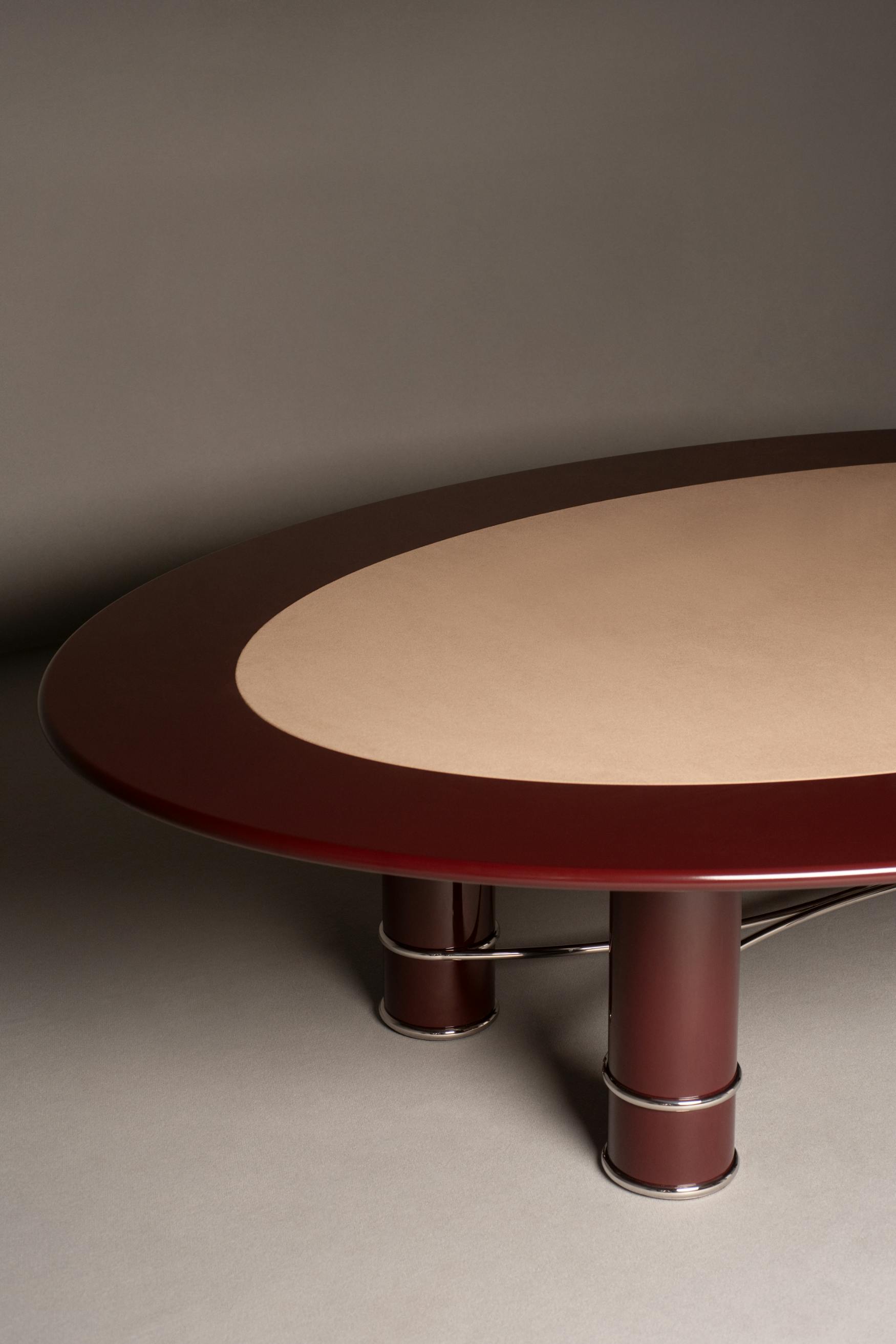 The collection of objects featuring Loro Piana's high-grade materials included a range of coffee and dining tables, chairs, cabinets, poufs, and a bed.