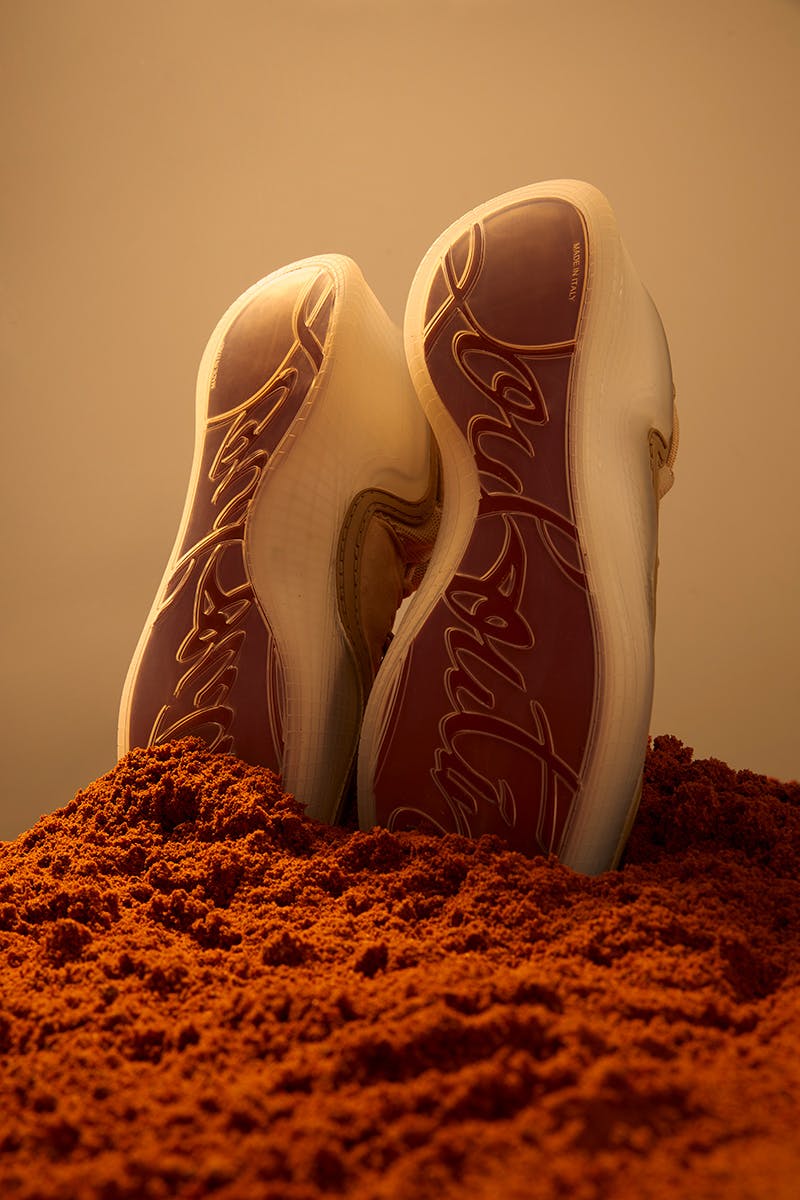 The outsole’s mold clocked up a staggering 400 hours to create, with another 300 hours for the machine milling alone — that’s 233 hours more than the Loubishark’s milling time. Crafted from TPU, a thermoplastic synthetic resin chosen for its ultra-lightweight and durable qualities, the outsole is entirely transparent and flexible, with its surface carved with graphic lines to create a dynamic feel.