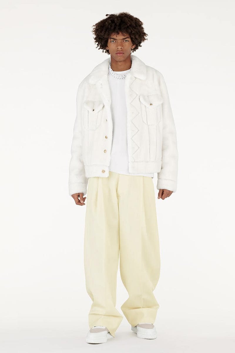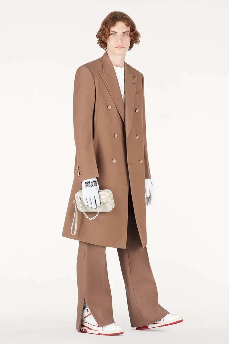 In terms of accessories, many items feature OFF-WHITE-esque detailing such as product numbers and fabric qualities, while various Louis Vuitton classics, like the trunk, are updated with bright orange chains. Shoes elevate the overall streetwear aesthetic, with chunky sneaker silhouettes and hi-tops sitting next to neon-laced formal dress shoes.