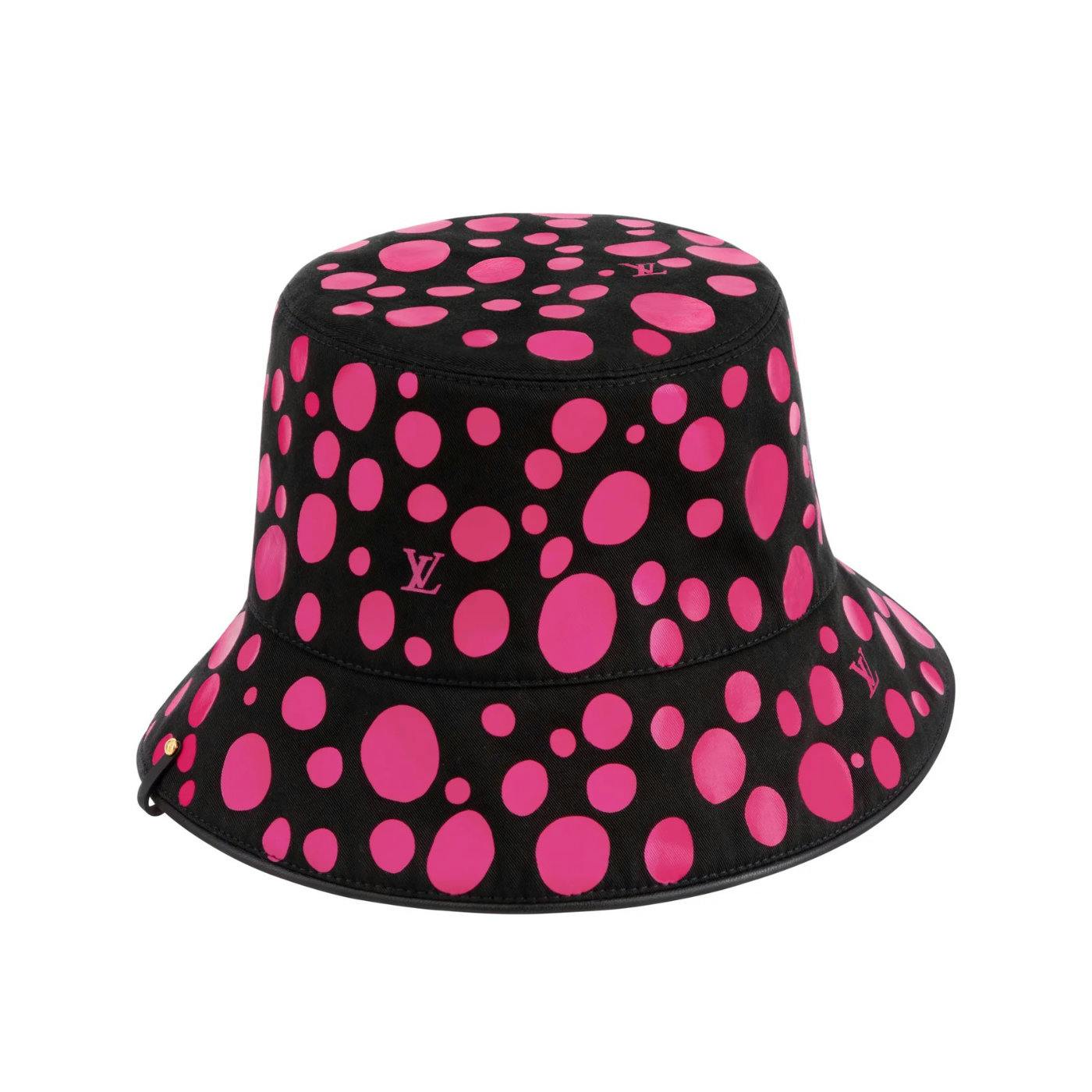 There's ample apparel on hand but the focus is on accessories, with a plethora of bags, scarves, sunglasses, bucket hats, and even fragrances dressed toe to tip in Kusama's polka dots.
