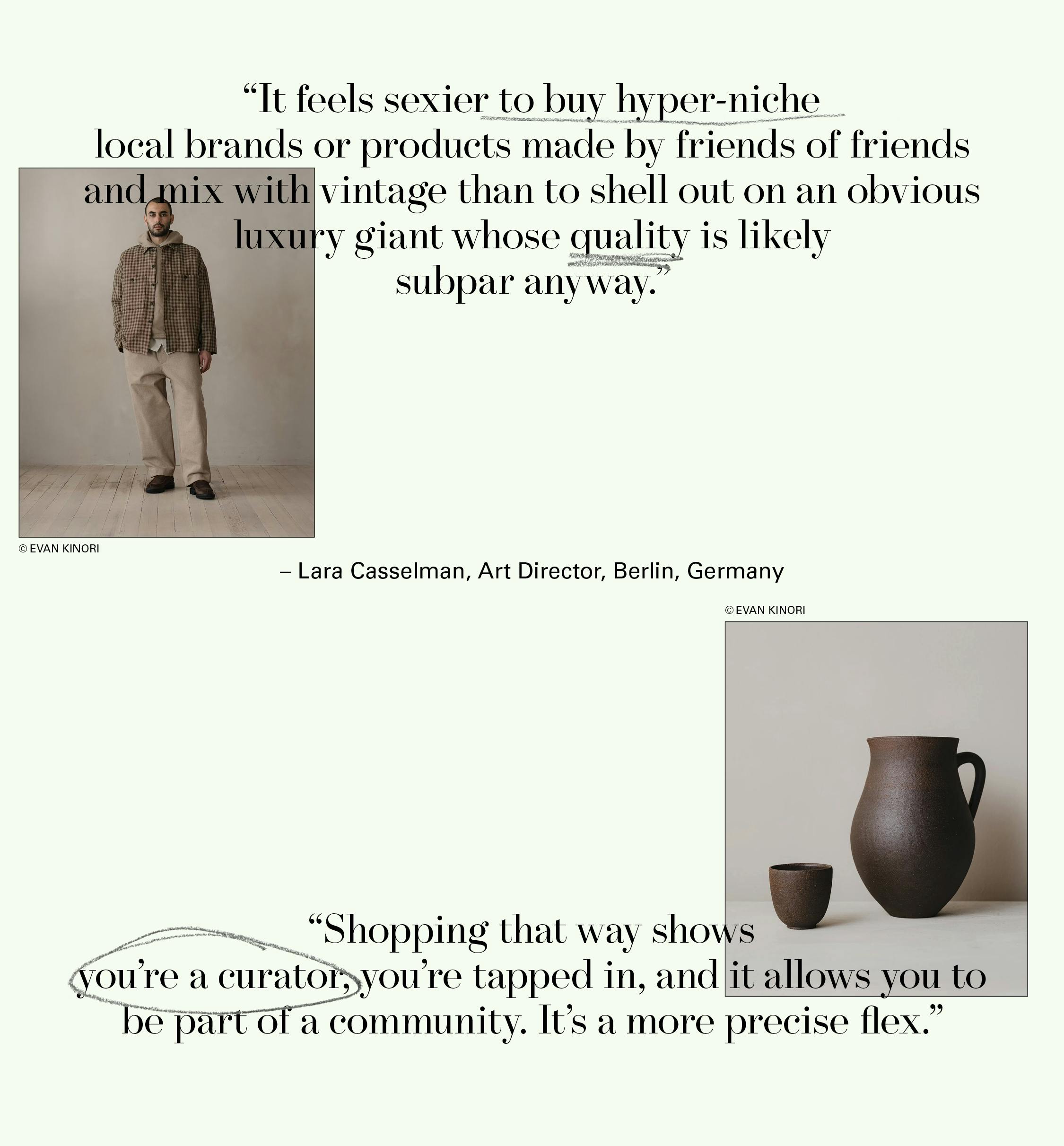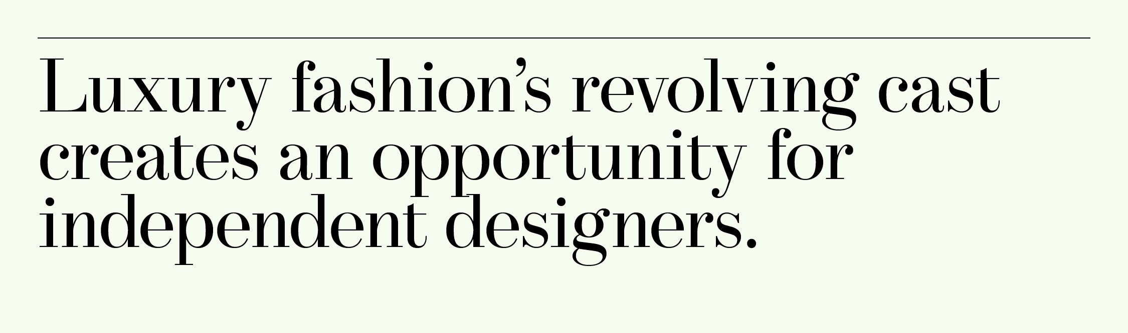 The opportunity now is for independent designers and the consumers who love them to thrive. We don’t want to buy things that feel like they were dreamed up in a conference room, and we don’t want to buy from a brand constantly jumping from new gimmick to new gimmick, trying to satisfy everyone, never landing on a consistent idea with depth and durability. Even brands that aren’t independent can and must start acting like they are.