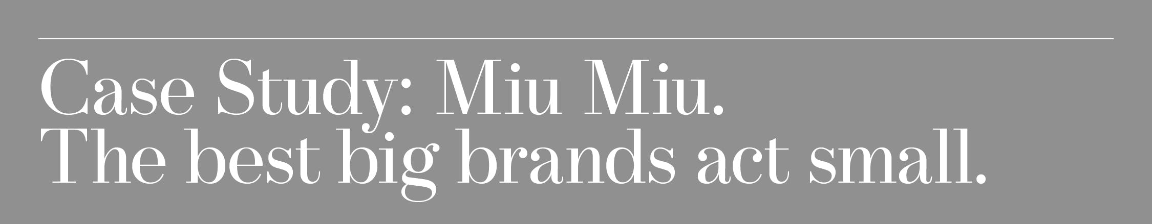If Miu Miu doesn’t exactly fit the narrative of consumers’ turn toward a more soft-spoken approach, it does offer an answer to the type of cultural credibility a bigger brand can prove.